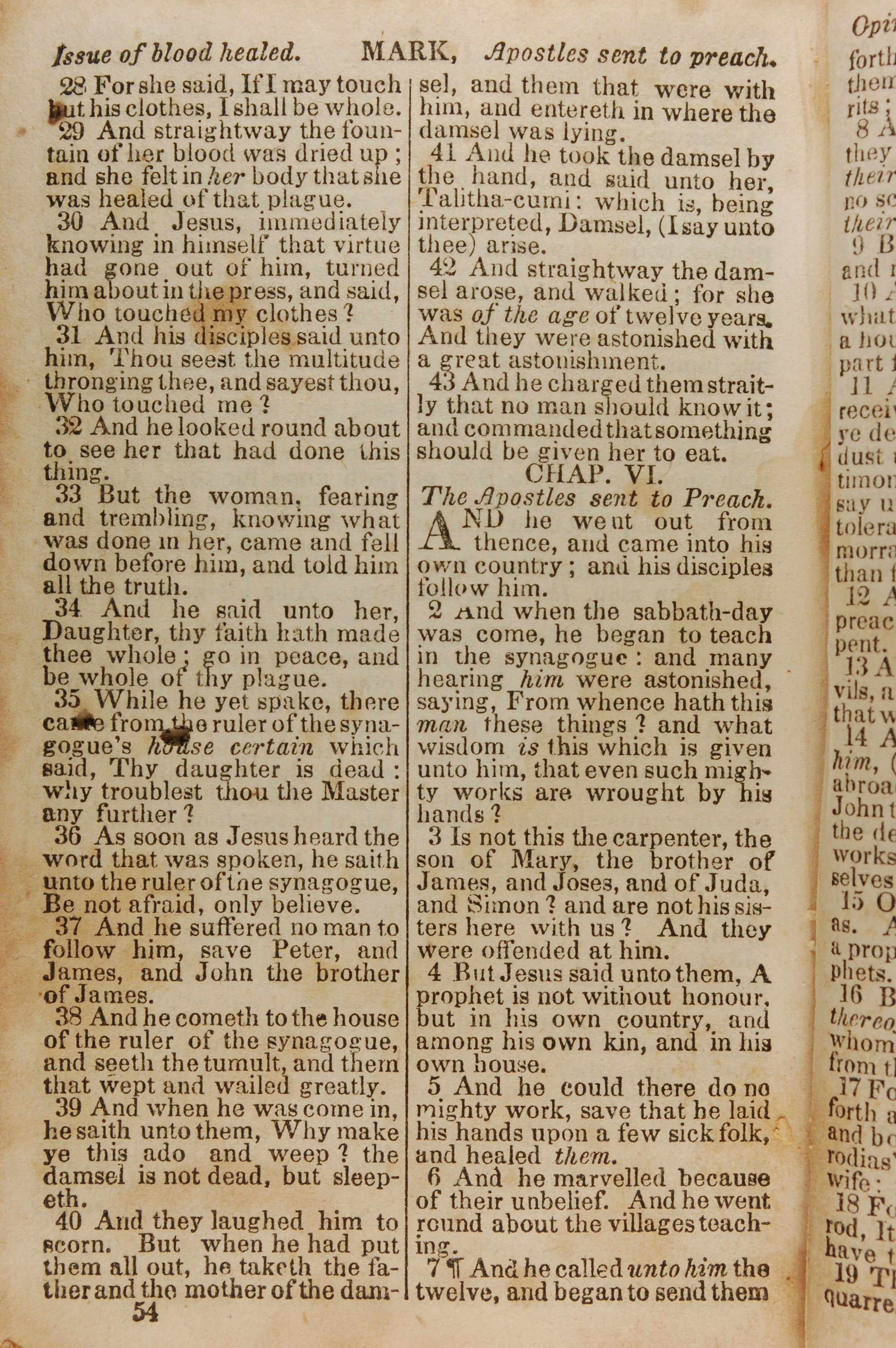 1843年The New Testament 马可福音 5 章 28 节到 6 章 7 节