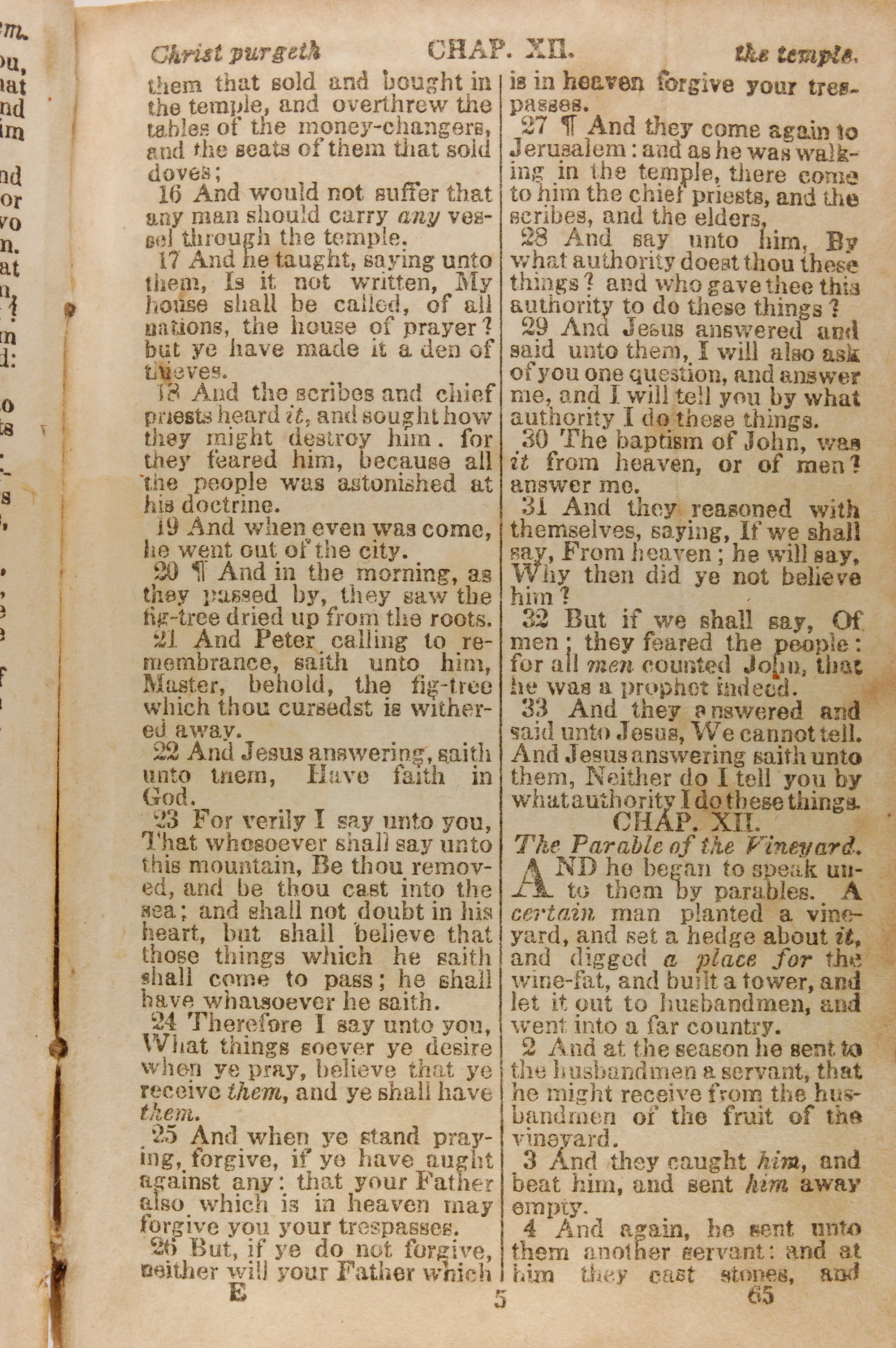 1843年The New Testament 马可福音 11 章 16 节到 12 章 4 节