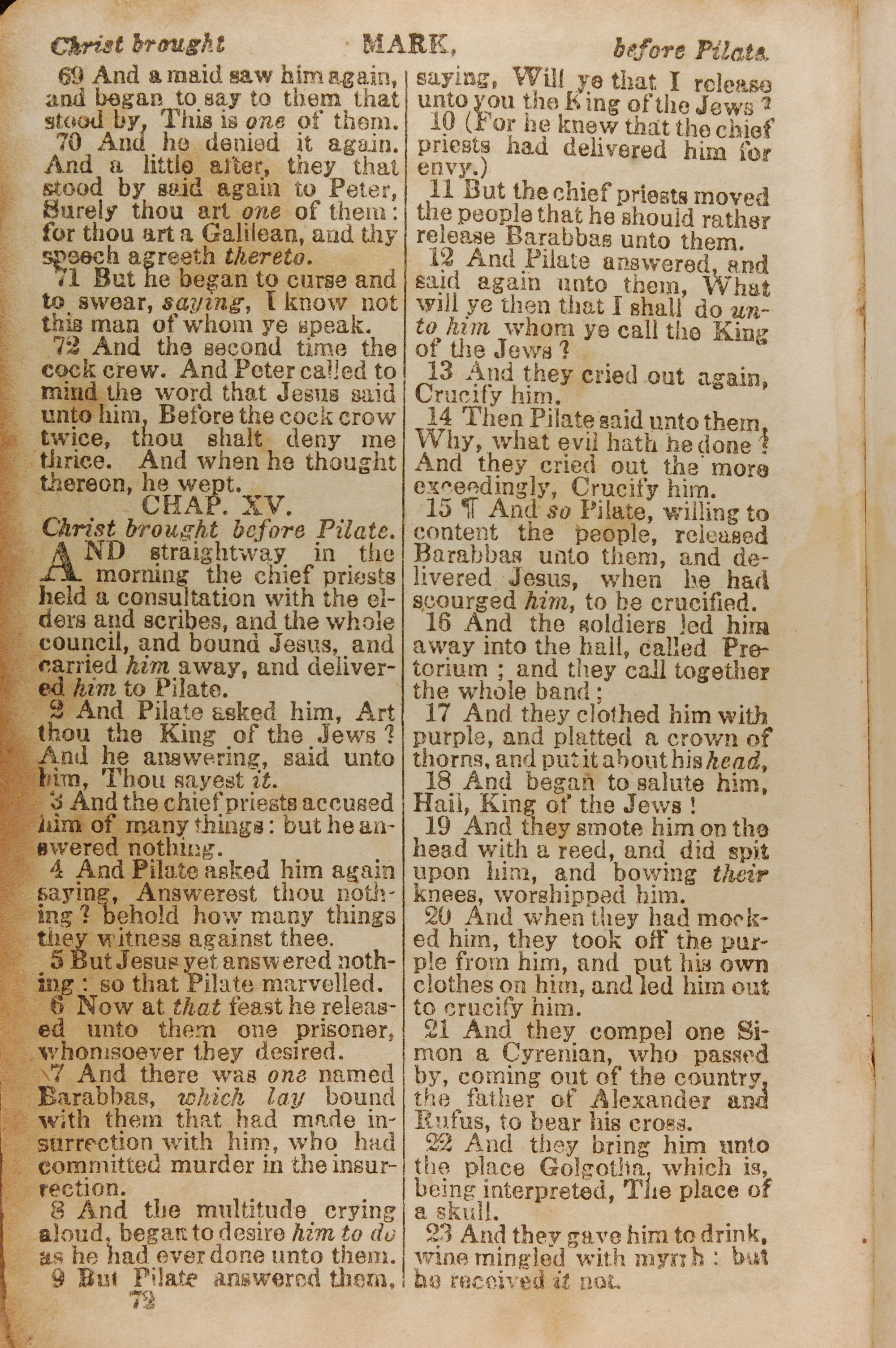 1843年The New Testament 马可福音 14 章 69 节到 15 章 23 节