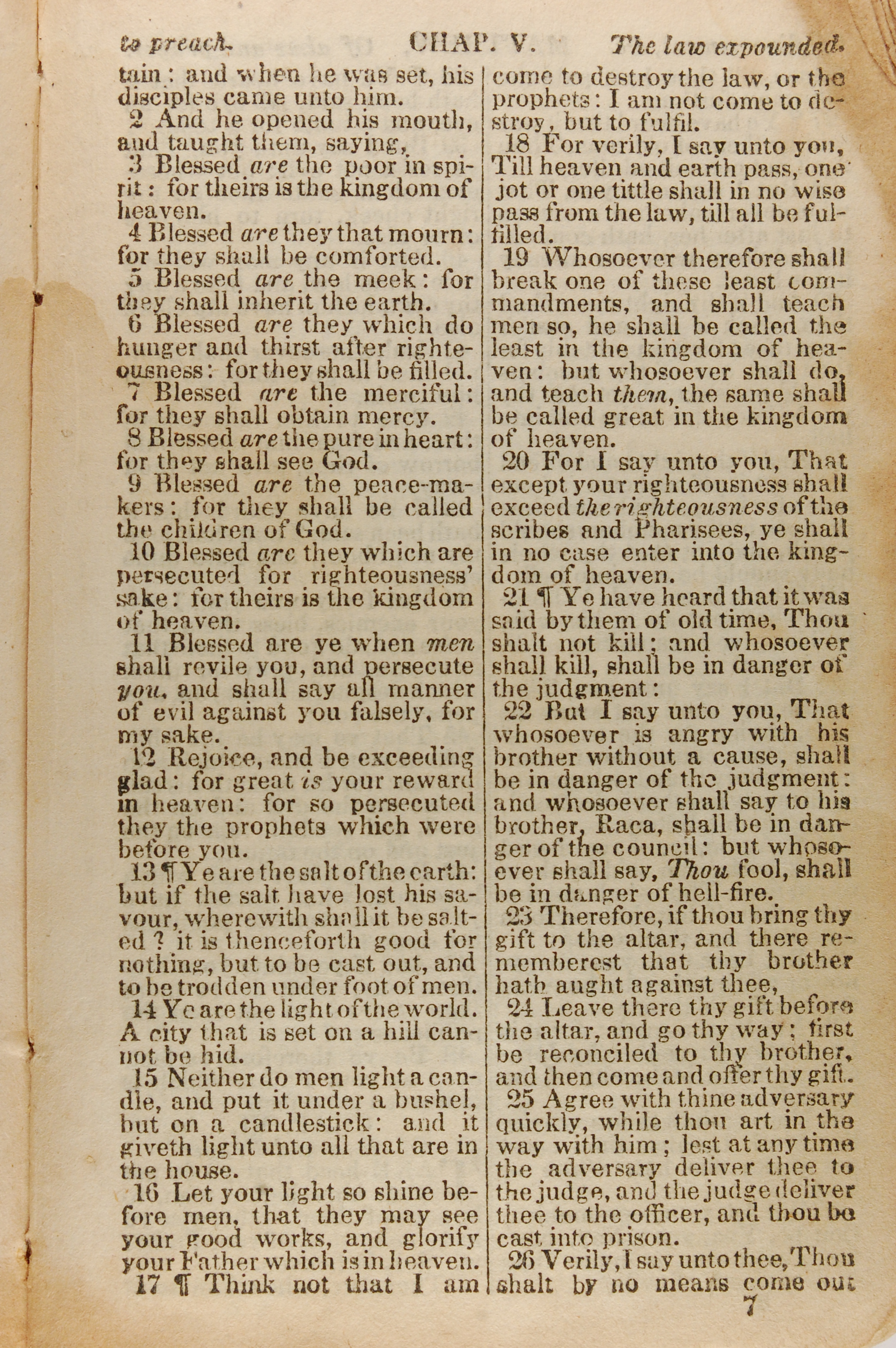 1843年The New Testament 马太福音 5 章 2 节到 5 章 26 节