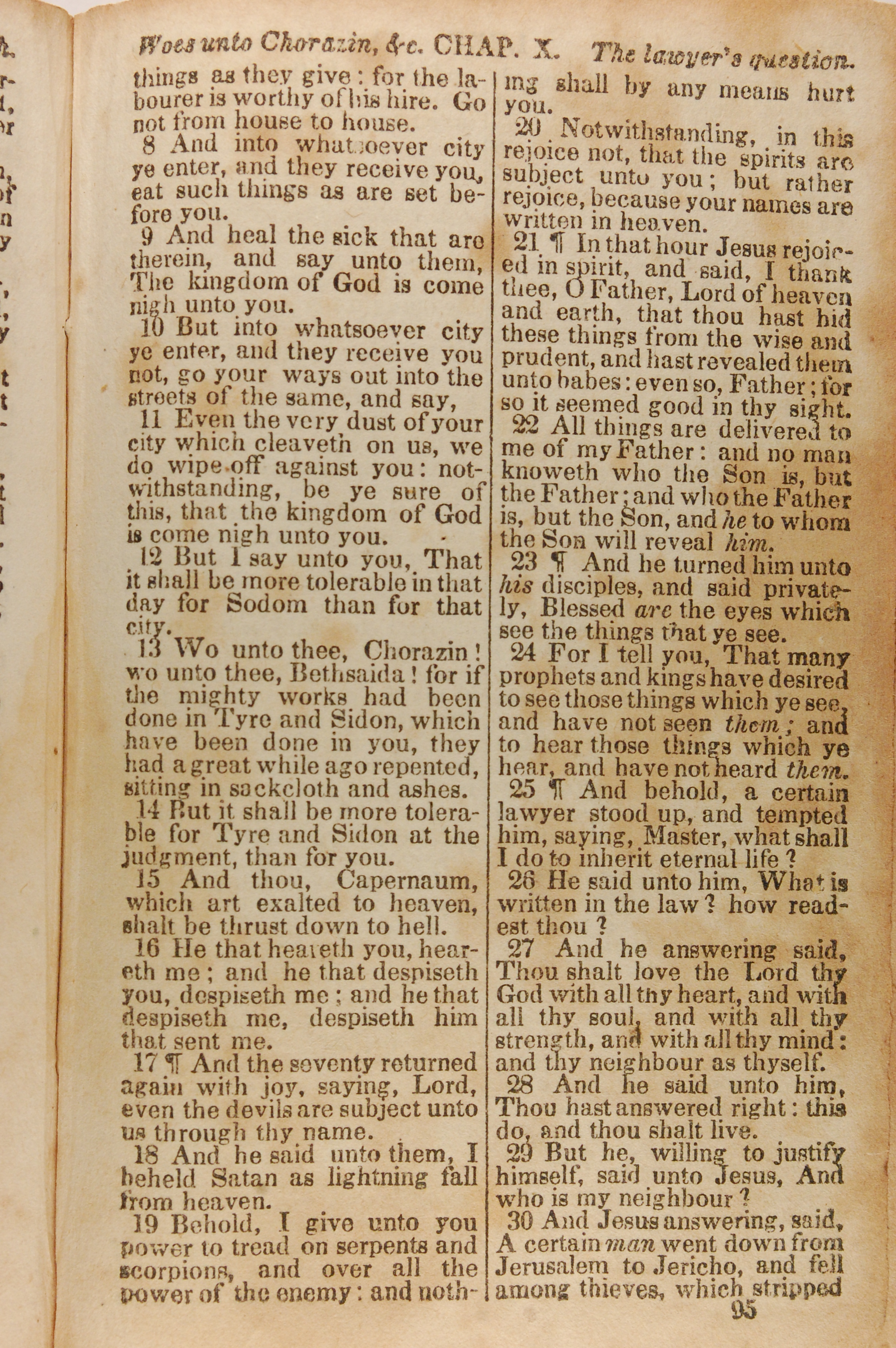 1843年The New Testament 路加福音 10 章 8 节到 10 章 30 节