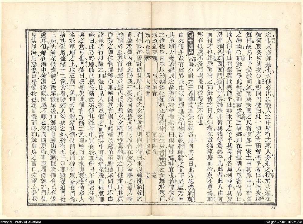 1885年新约全书 马太福音 13 章 49 节到 14 章 27 节