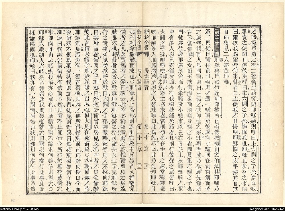 1885年新约全书 马太福音 20 章 30 节到 21 章 24 节