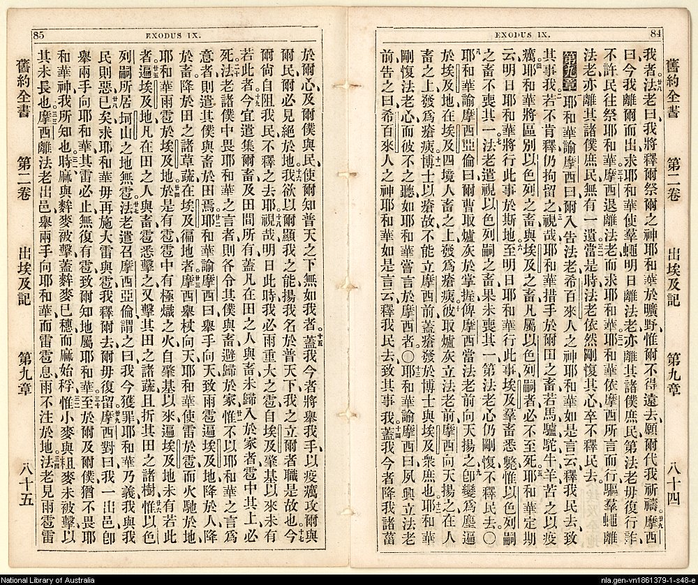 1865年旧约创世记至士师记 出埃及记 8 章 28 节到 9 章 34 节
