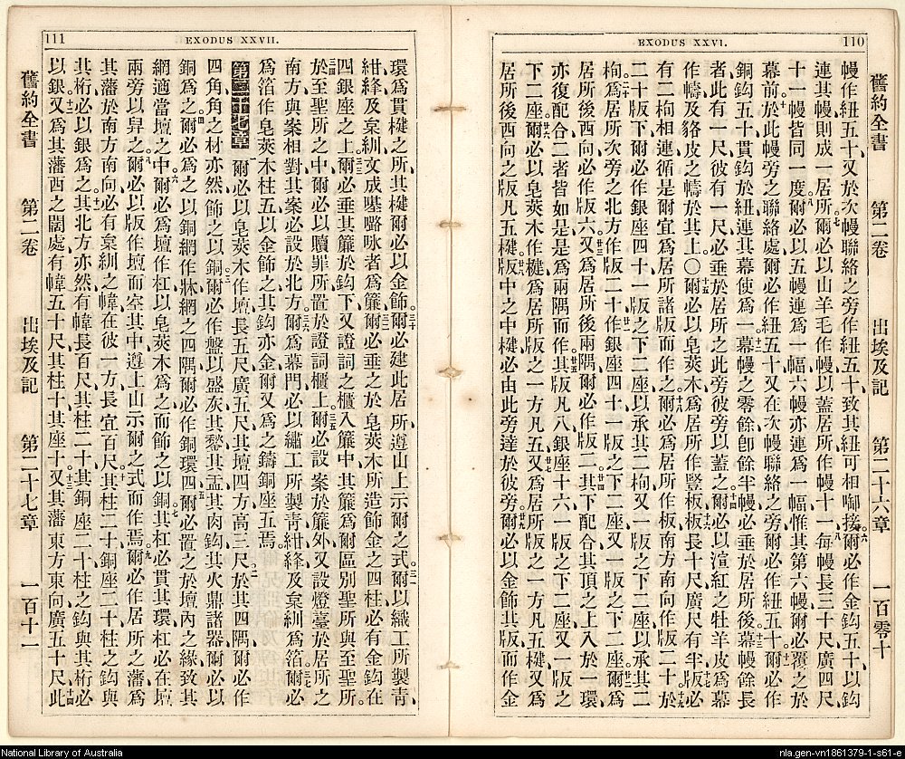 1865年旧约创世记至士师记 出埃及记 26 章 6 节到 27 章 14 节