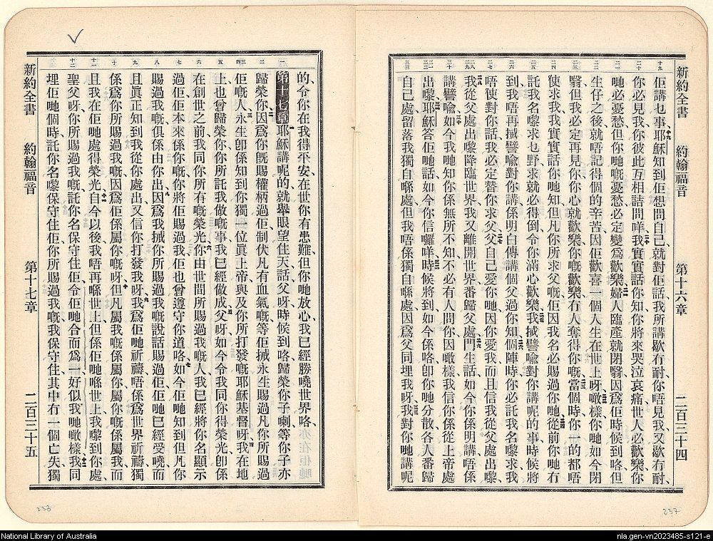 1906年新约全书 约翰福音 16 章 19 节到 17 章 12 节