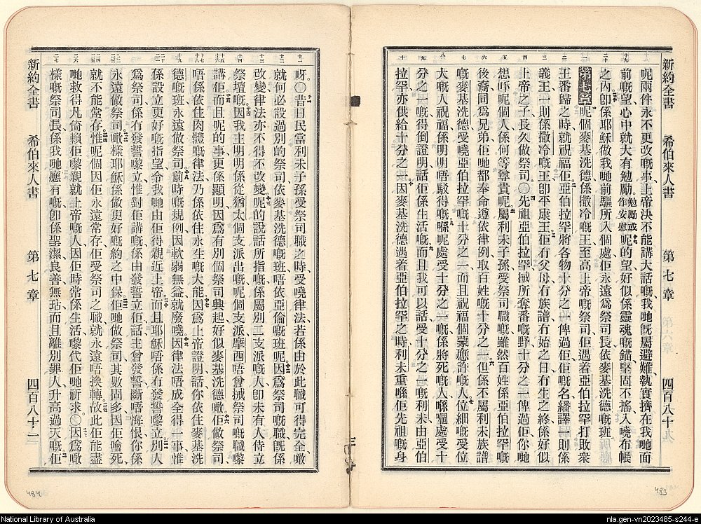 1906年新约全书 希伯来书 6 章 19 节到 7 章 27 节