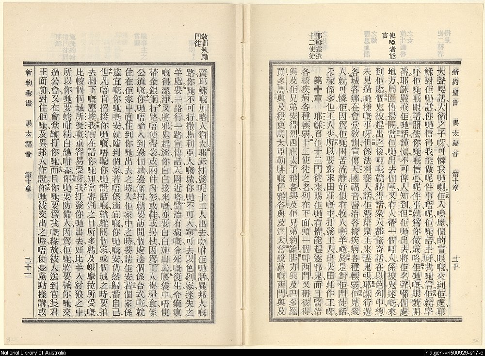 1927年新约全书 马太福音 9 章 28 节到 10 章 19 节