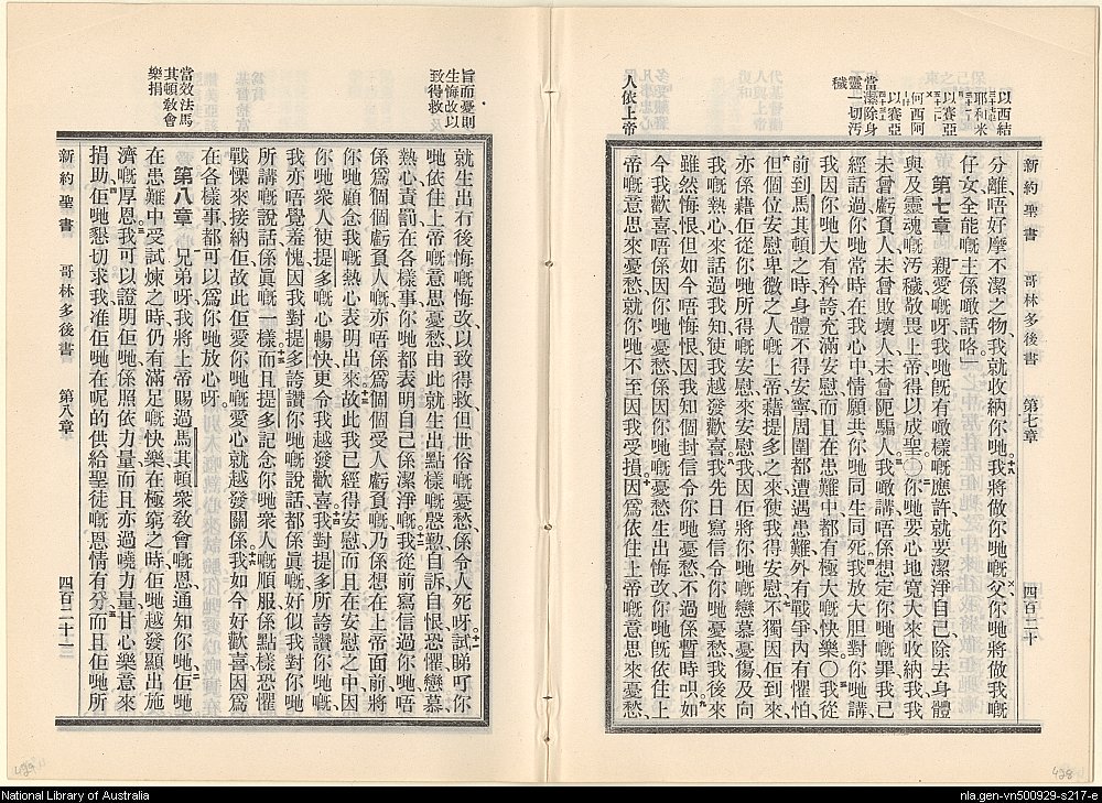 1927年新约全书 哥林多后书 6 章 18 节到 8 章 5 节