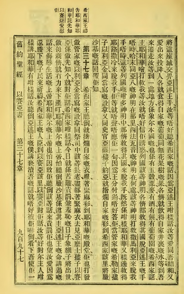 1923年新旧约全书 以赛亚书 36 章 15 节到 37 章 7 节