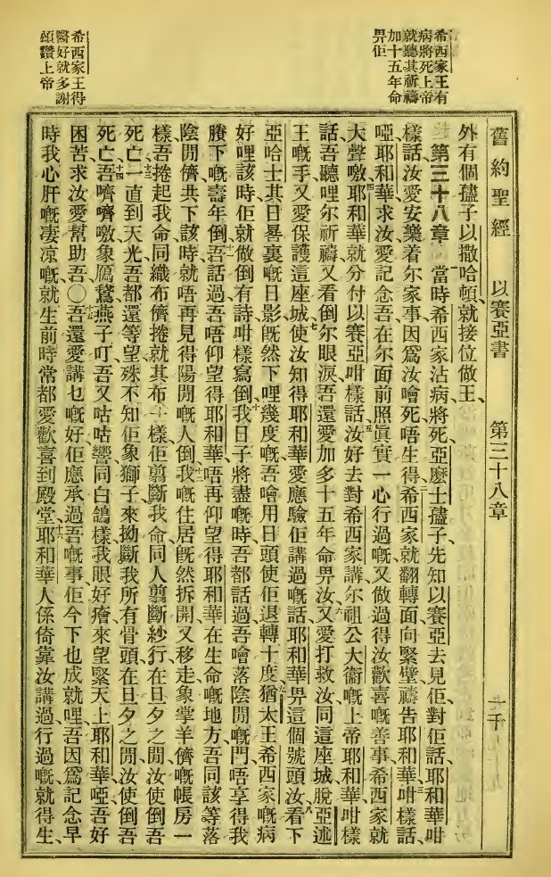 1923年新旧约全书 以赛亚书 37 章 38 节到 38 章 16 节