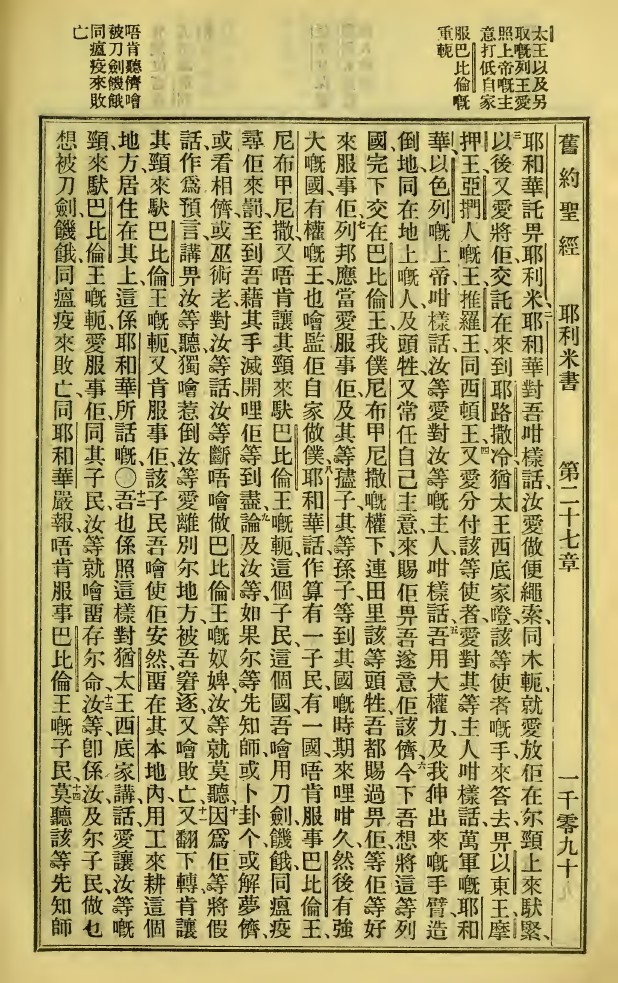 1923年新旧约全书 耶利米书 27 章 1 节到 27 章 14 节