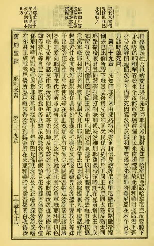 1923年新旧约全书 耶利米书 28 章 14 节到 29 章 11 节