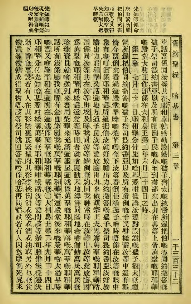 1923年新旧约全书 哈该书 1 章 13 节到 2 章 13 节
