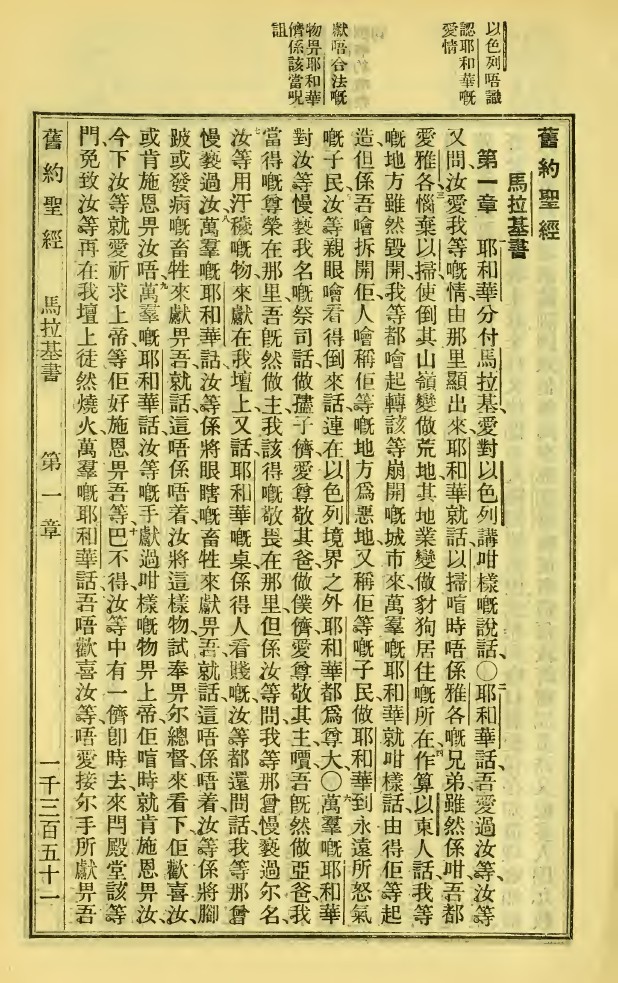 1923年新旧约全书 玛拉基书 1 章 1 节到 1 章 10 节