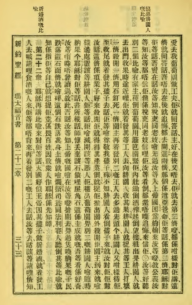 1923年新旧约全书 马太福音 21 章 28 节到 22 章 4 节
