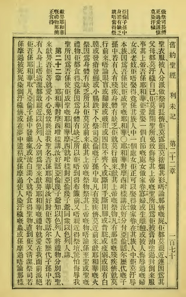 1923年新旧约全书 利未记 21 章 11 节到 22 章 5 节