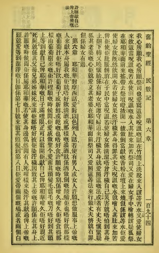 1923年新旧约全书 民数记 5 章 23 节到 6 章 10 节