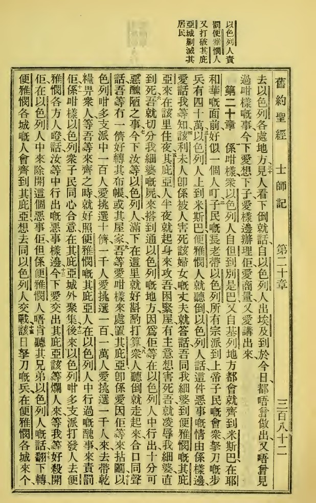1923年新旧约全书 士师记 19 章 30 节到 20 章 15 节