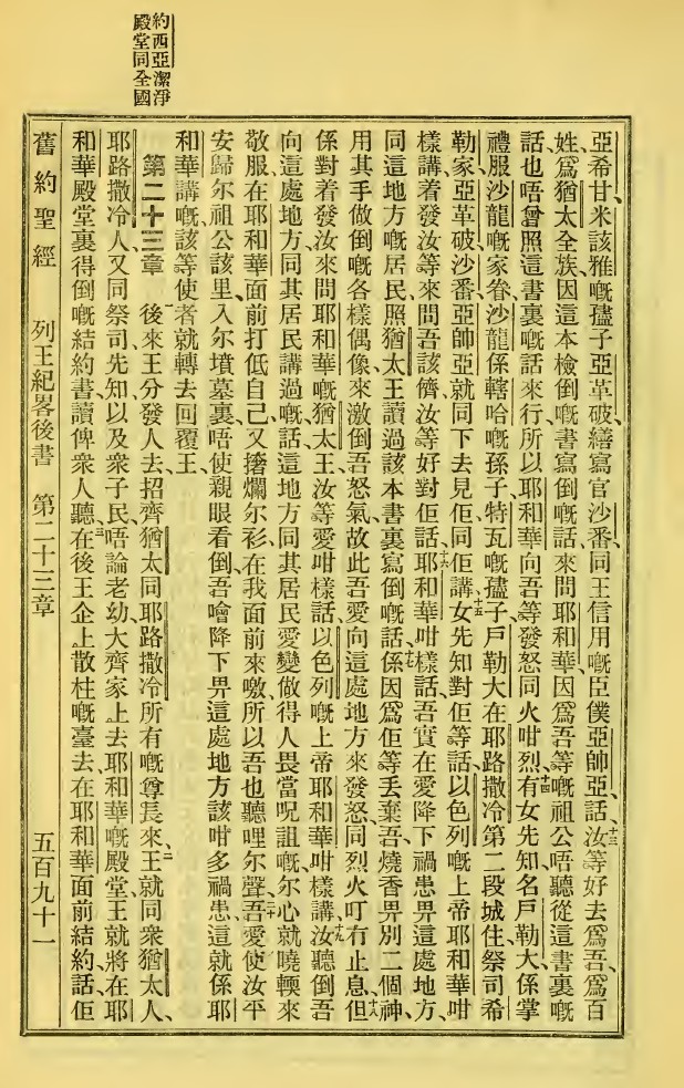 1923年新旧约全书 列王纪下 22 章 13 节到 23 章 3 节