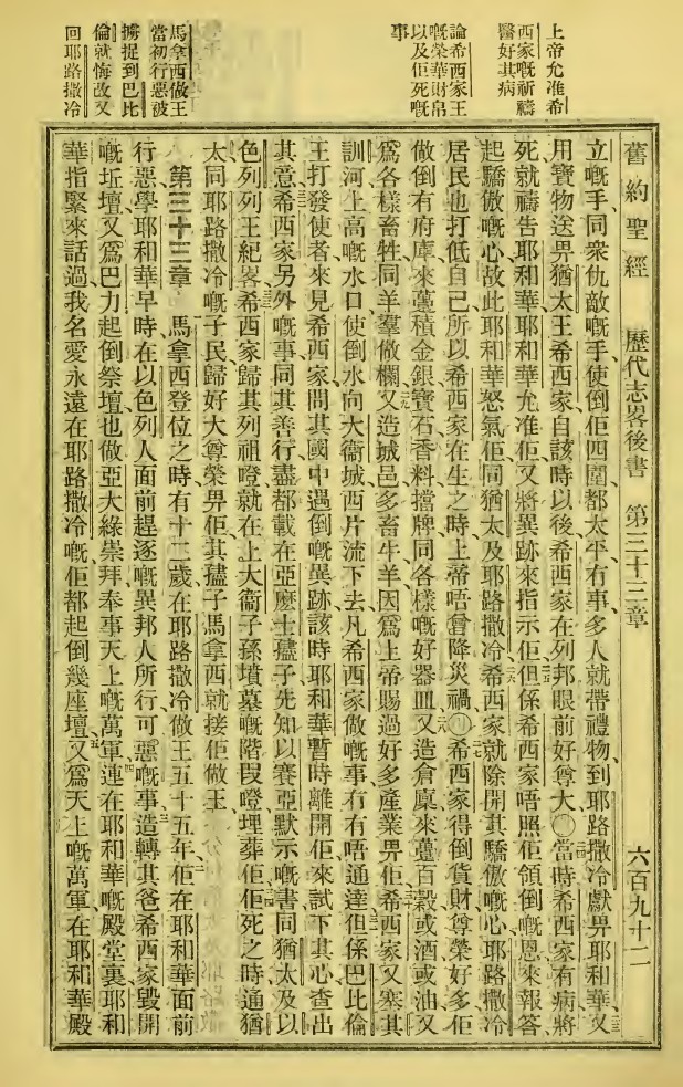 1923年新旧约全书 历代志下 32 章 23 节到 33 章 5 节