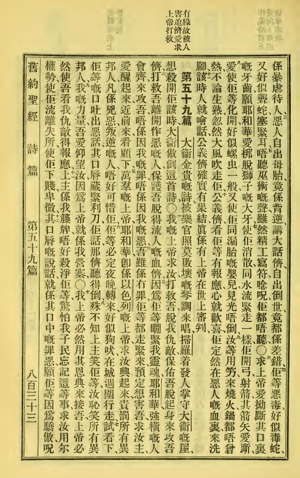 1923年新旧约全书 诗篇 58 章 2 节到 59 章 12 节