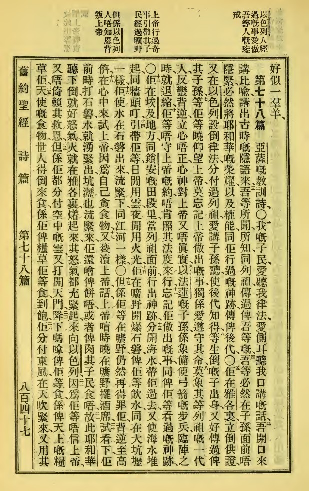 1923年新旧约全书 诗篇 77 章 20 节到 78 章 26 节