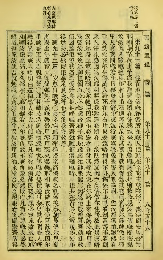 1923年新旧约全书 诗篇 91 章 1 节到 92 章 11 节