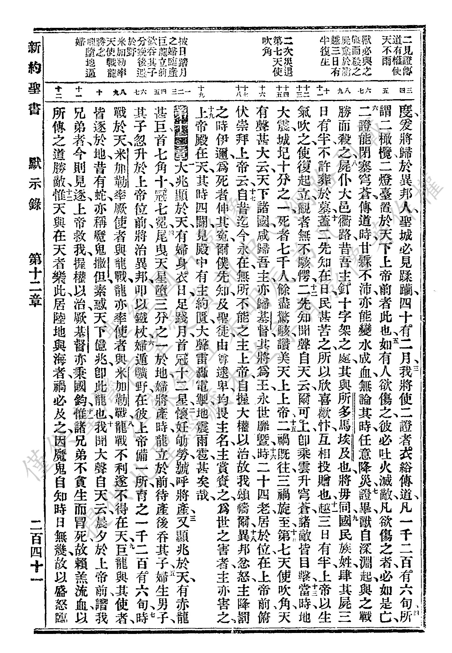 1927年新旧约全书(委办译本) 启示录 11 章 3 节到 12 章 12 节