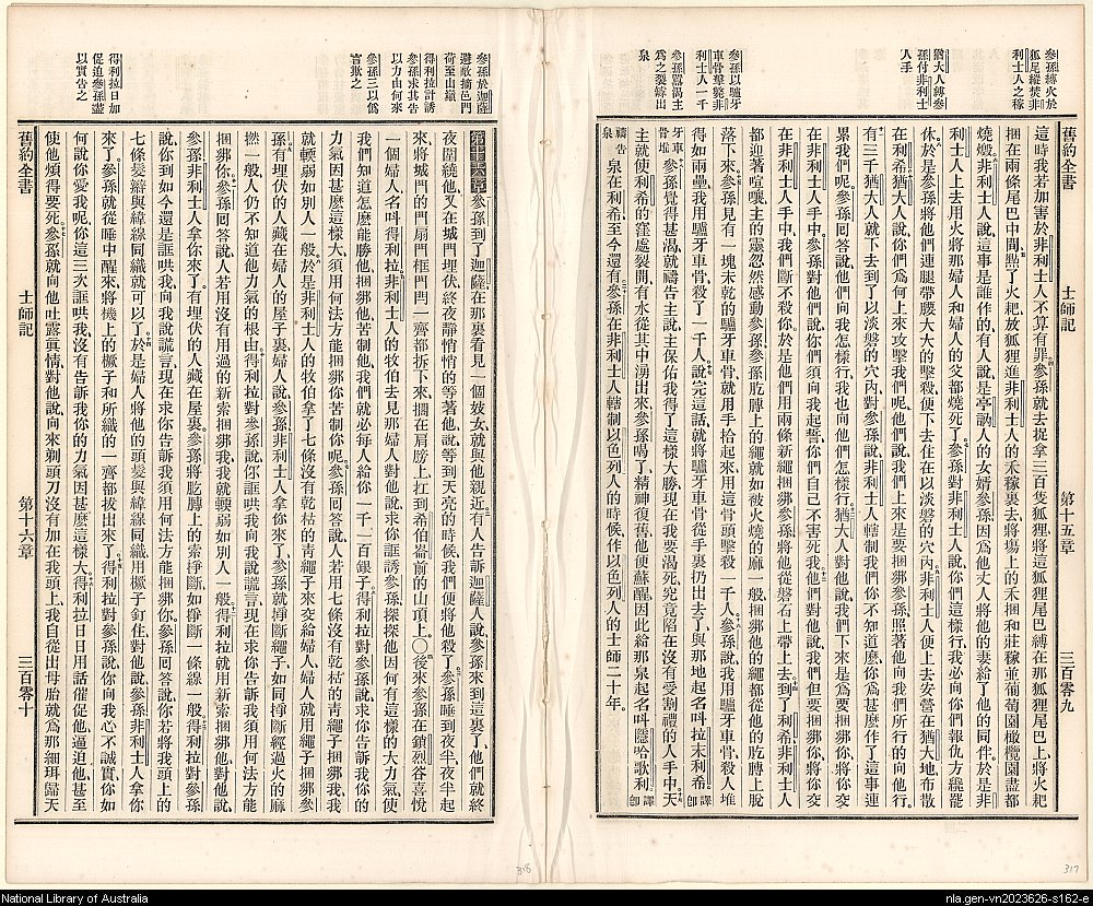 1874年旧约全书 士师记 15 章 4 节到 16 章 17 节