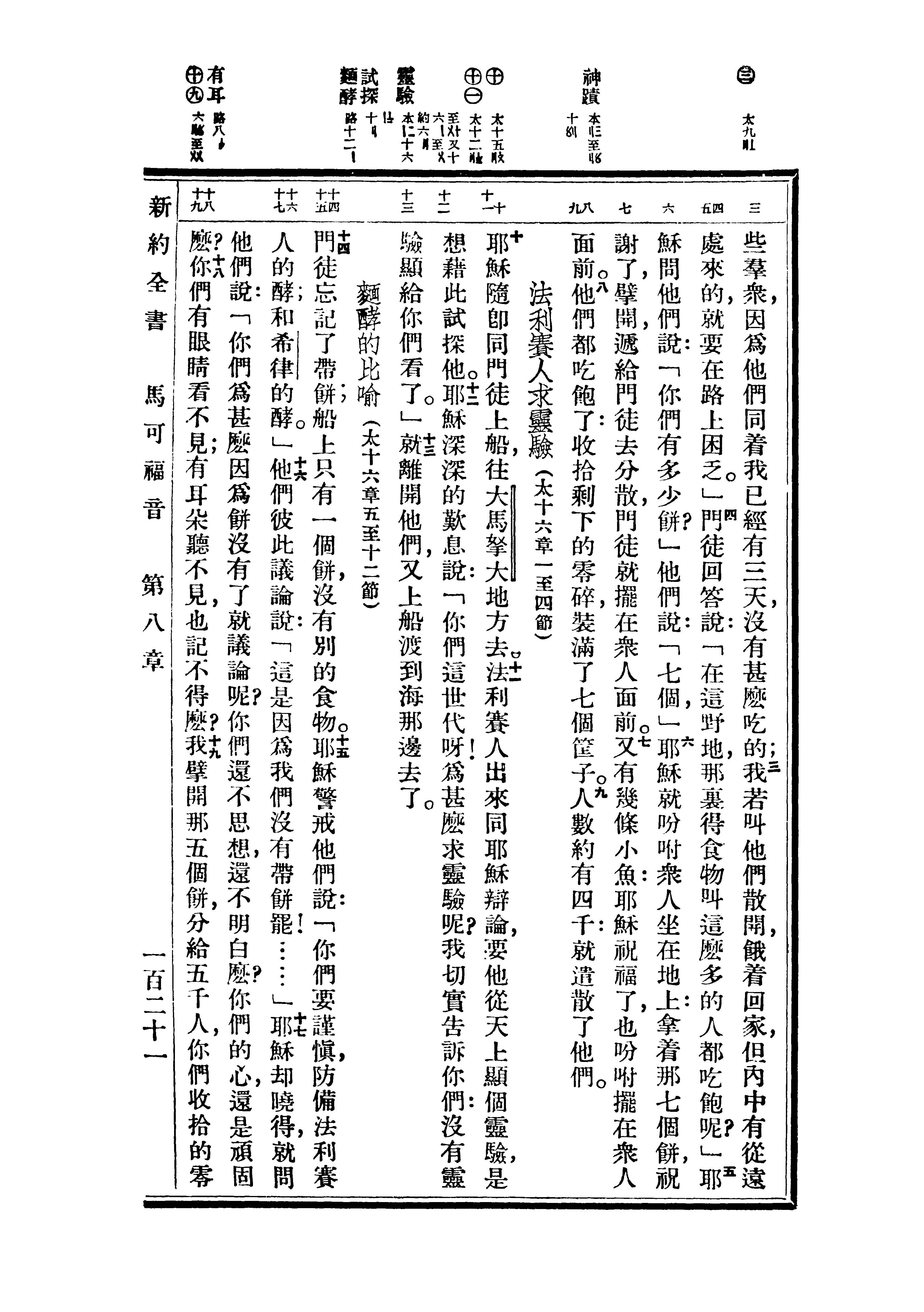 1936年重译新约全书 马可福音 8 章 3 节到 8 章 19 节