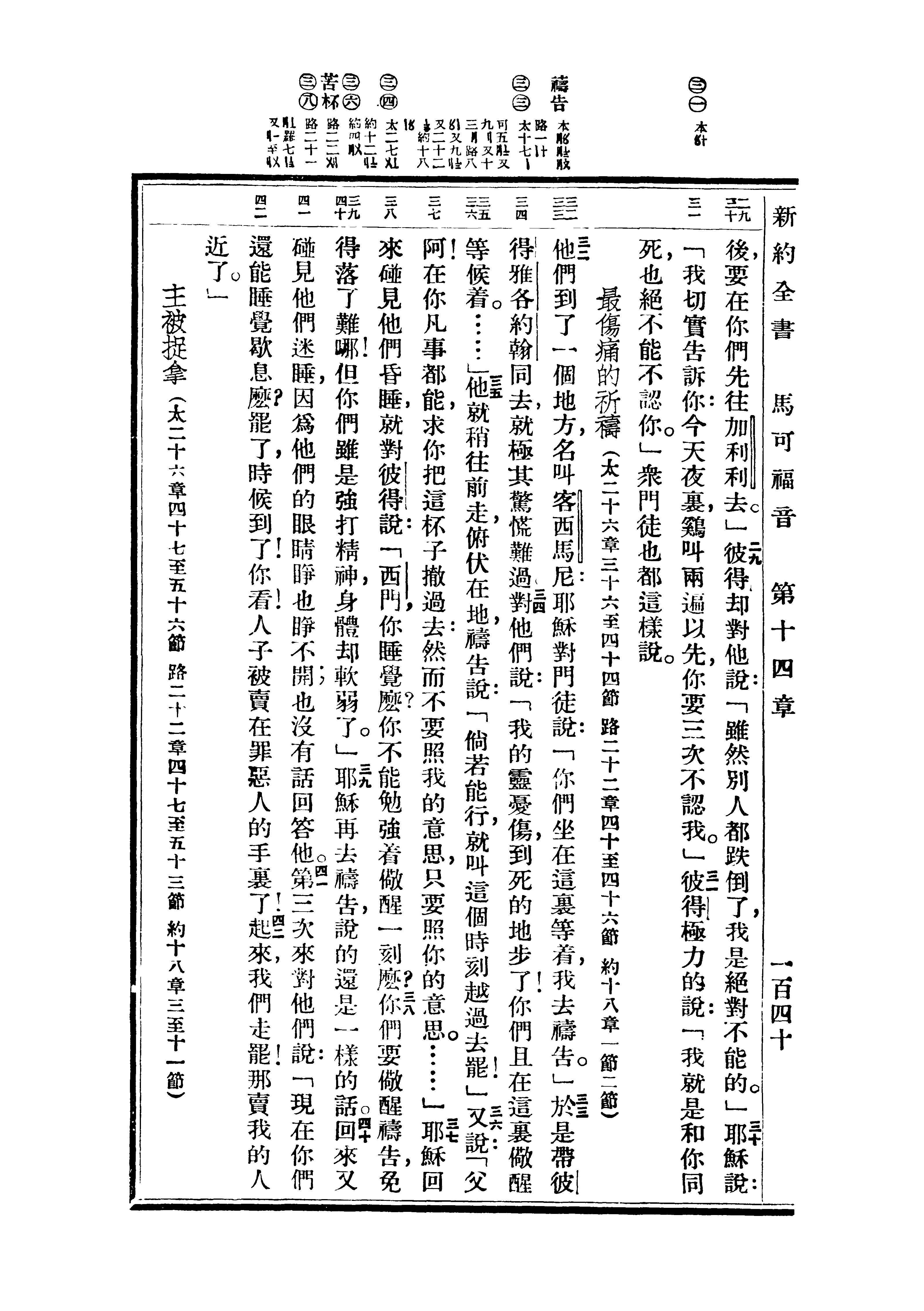 1936年重译新约全书 马可福音 14 章 29 节到 14 章 42 节