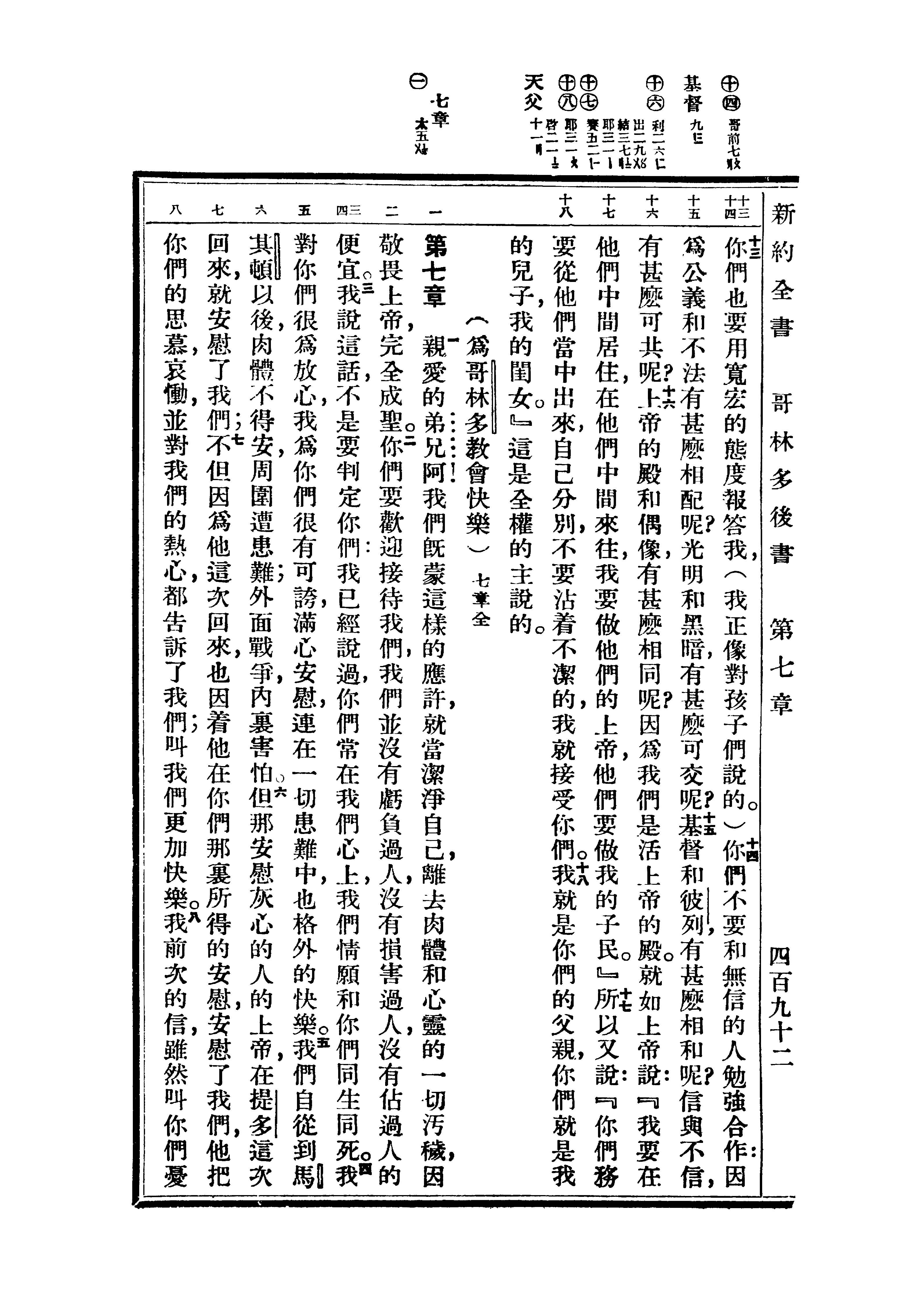 1936年重译新约全书 哥林多后书 6 章 13 节到 7 章 7 节