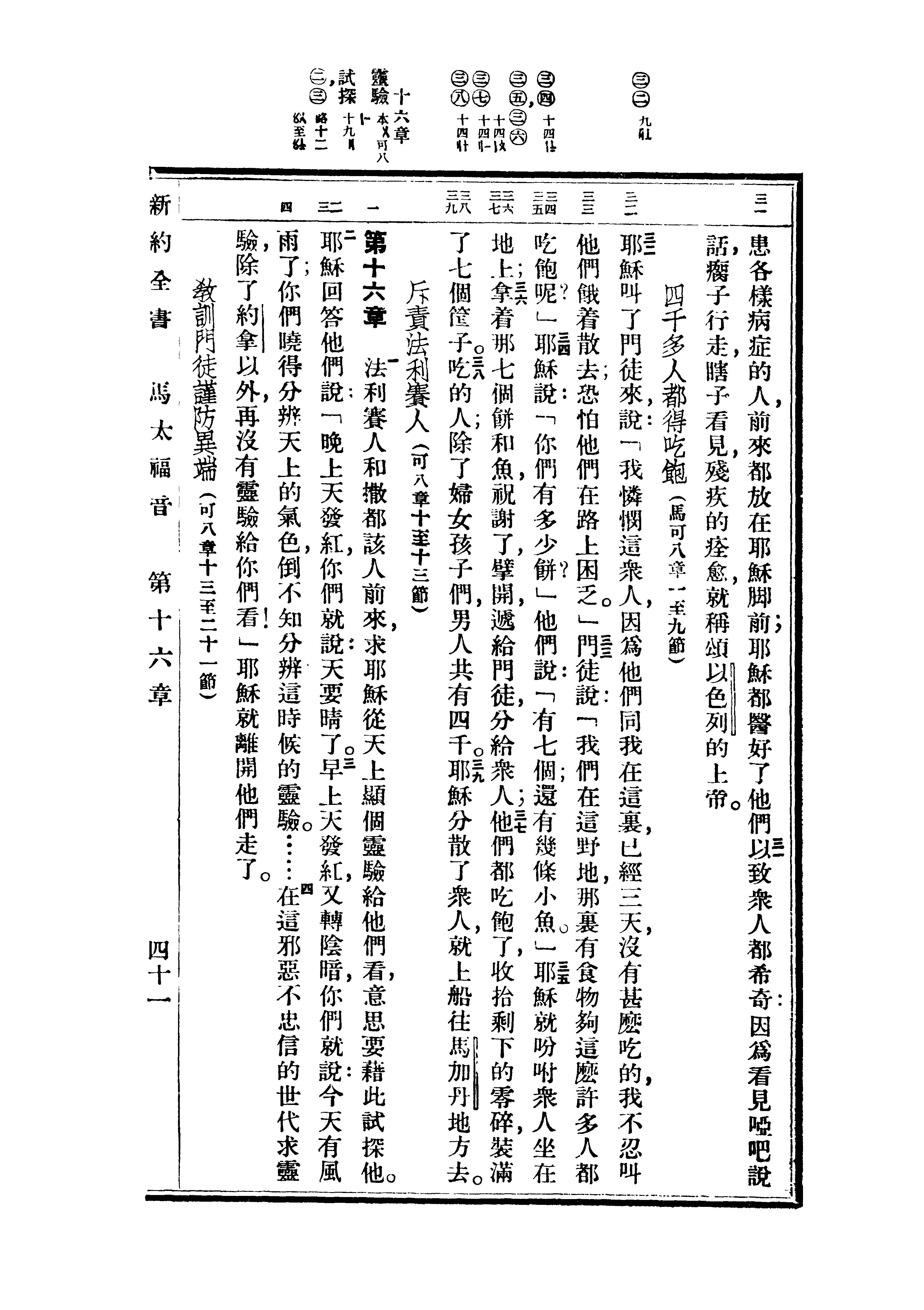 1936年重译新约全书 马太福音 15 章 31 节到 16 章 4 节