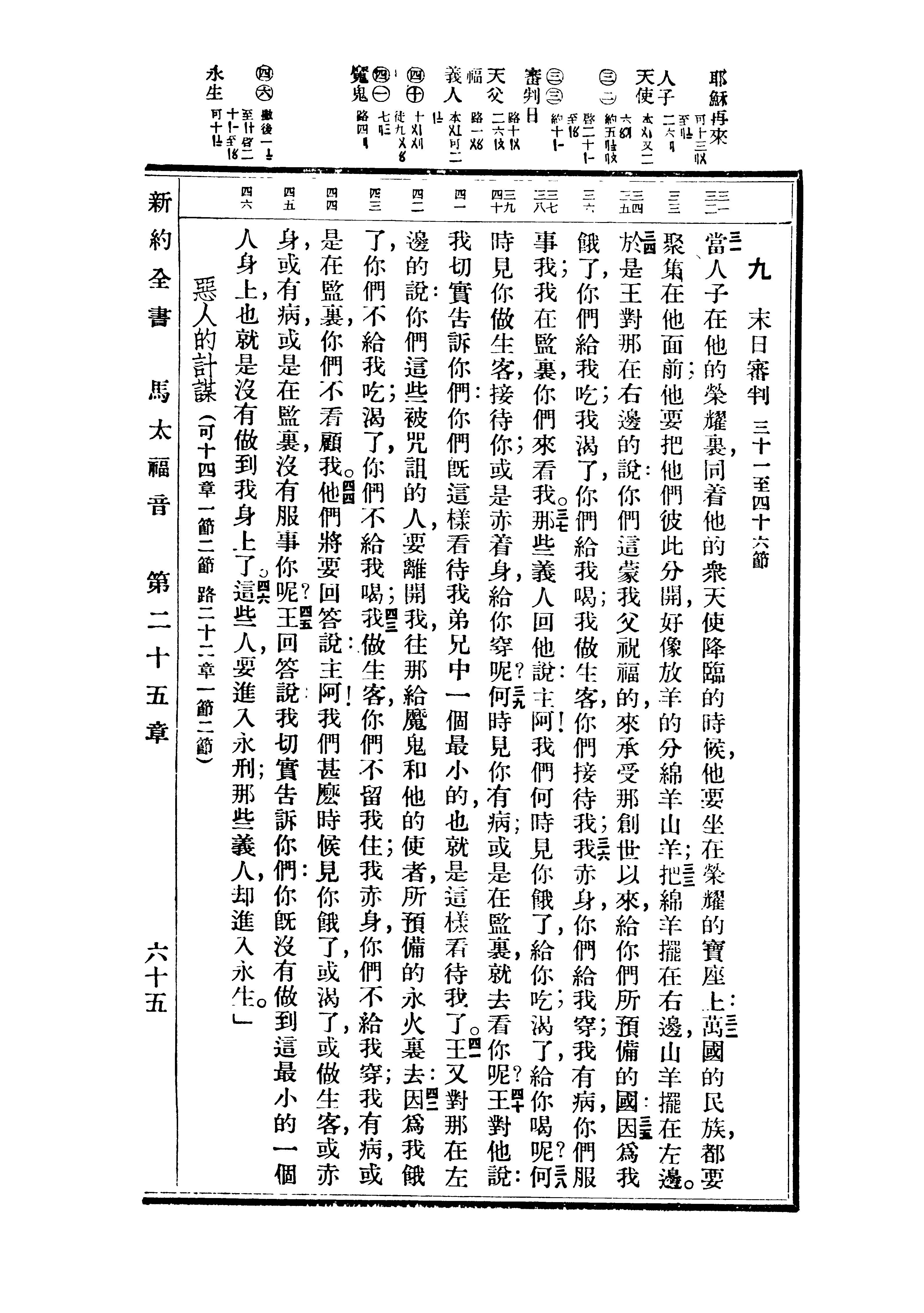1936年重译新约全书 马太福音 25 章 31 节到 25 章 46 节