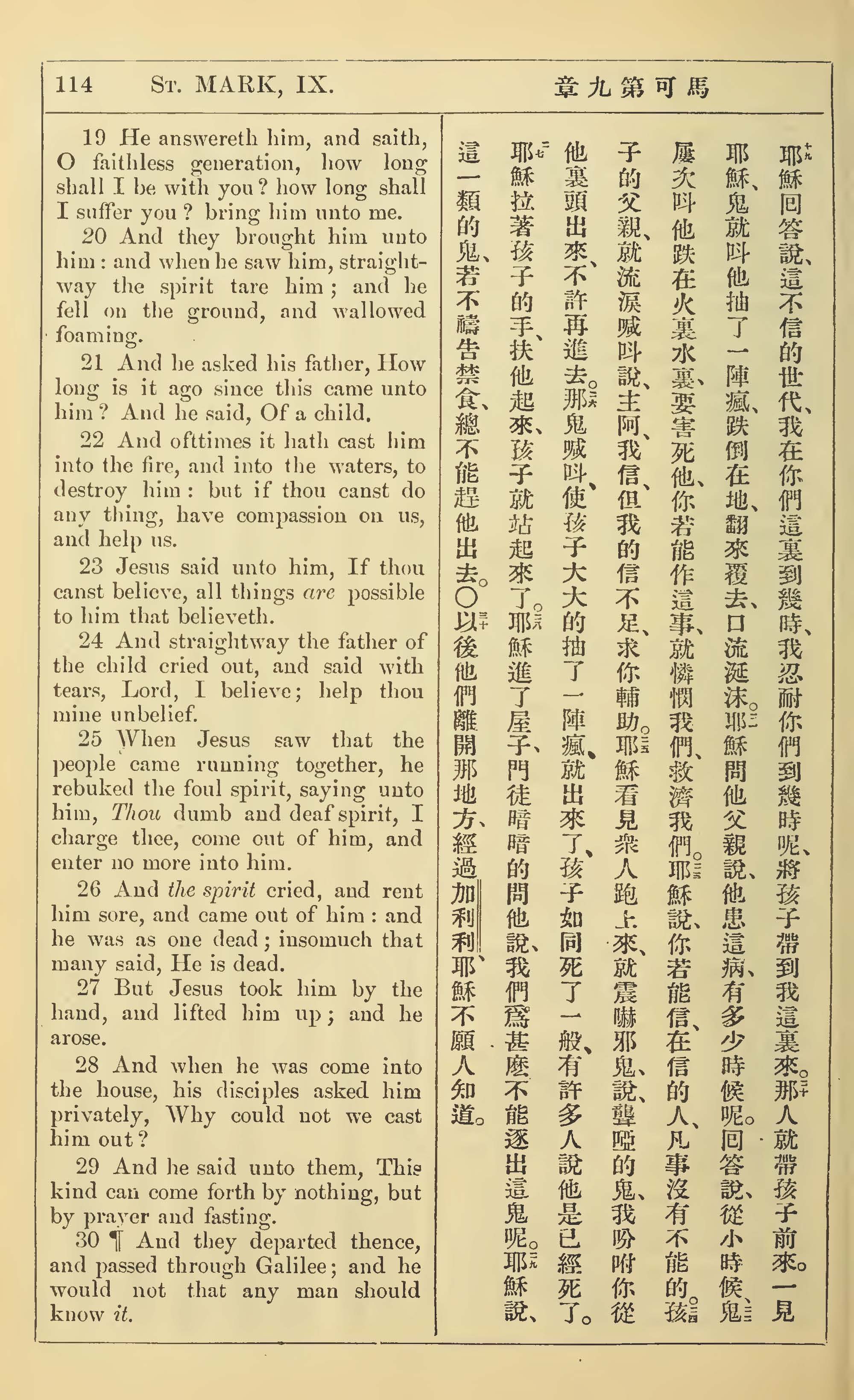1902年新约全书(中英对照) 马可福音 9 章 19 节到 9 章 30 节