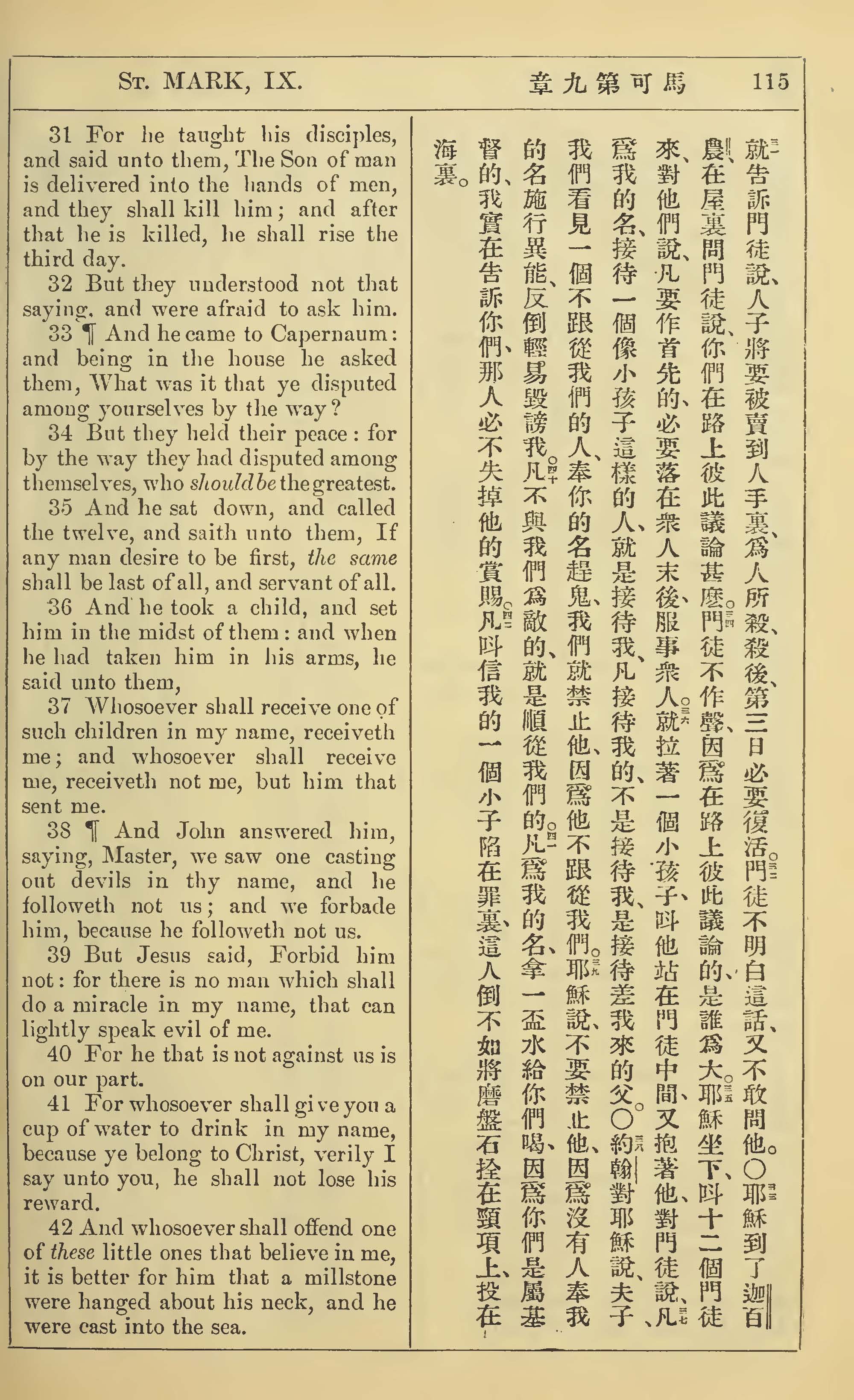 1902年新约全书(中英对照) 马可福音 9 章 31 节到 9 章 42 节