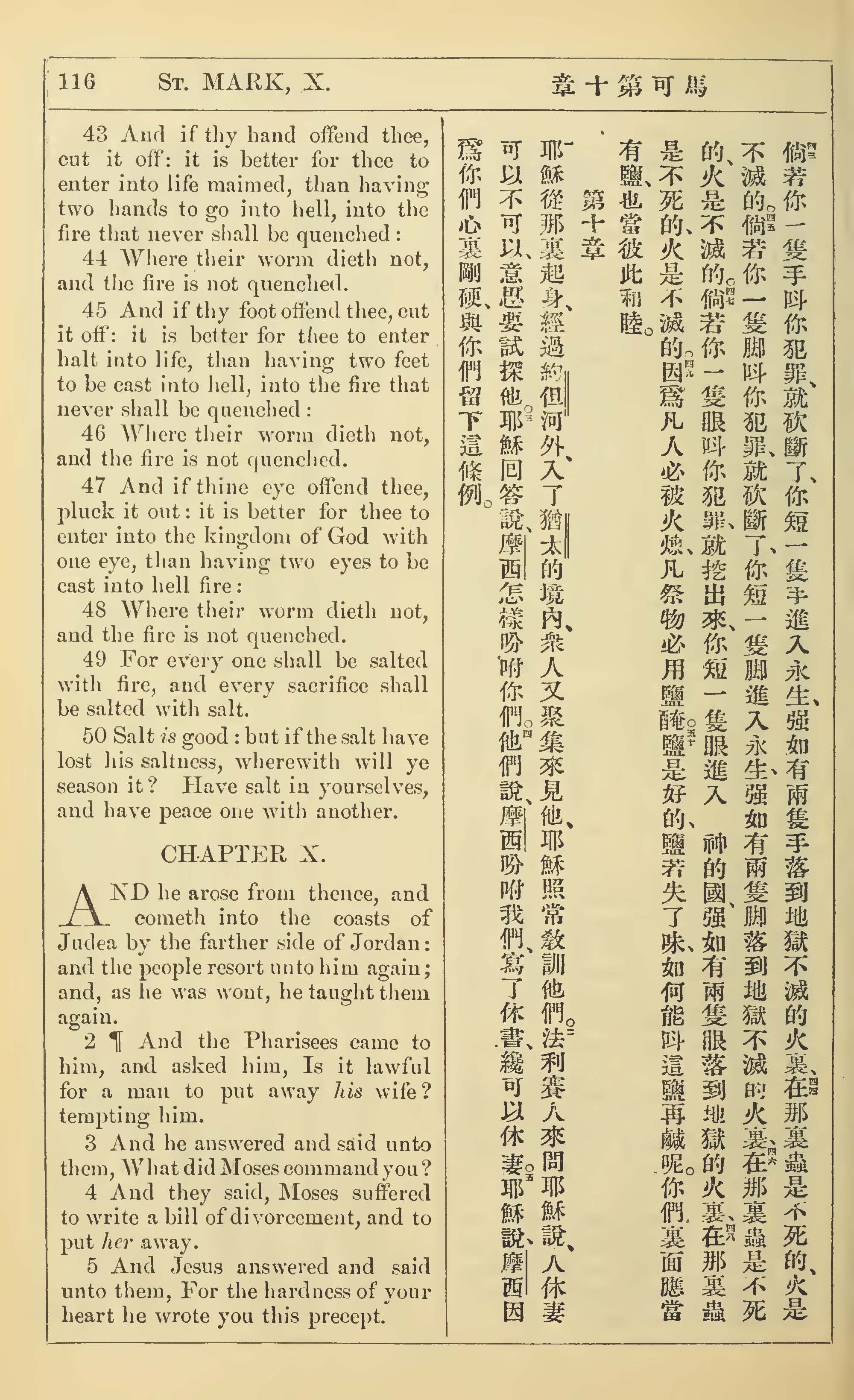 1902年新约全书(中英对照) 马可福音 9 章 43 节到 10 章 5 节