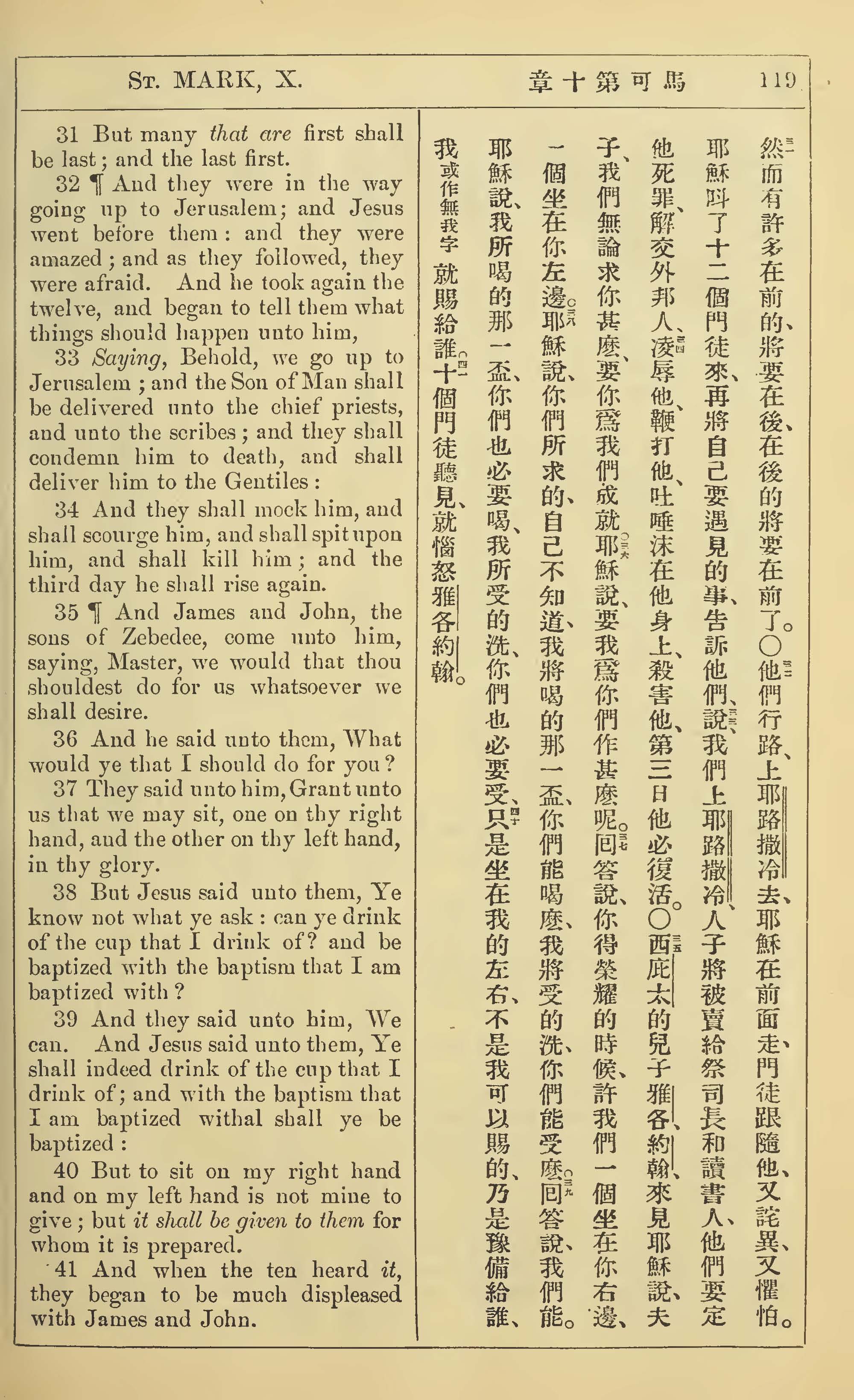 1902年新约全书(中英对照) 马可福音 10 章 31 节到 10 章 41 节
