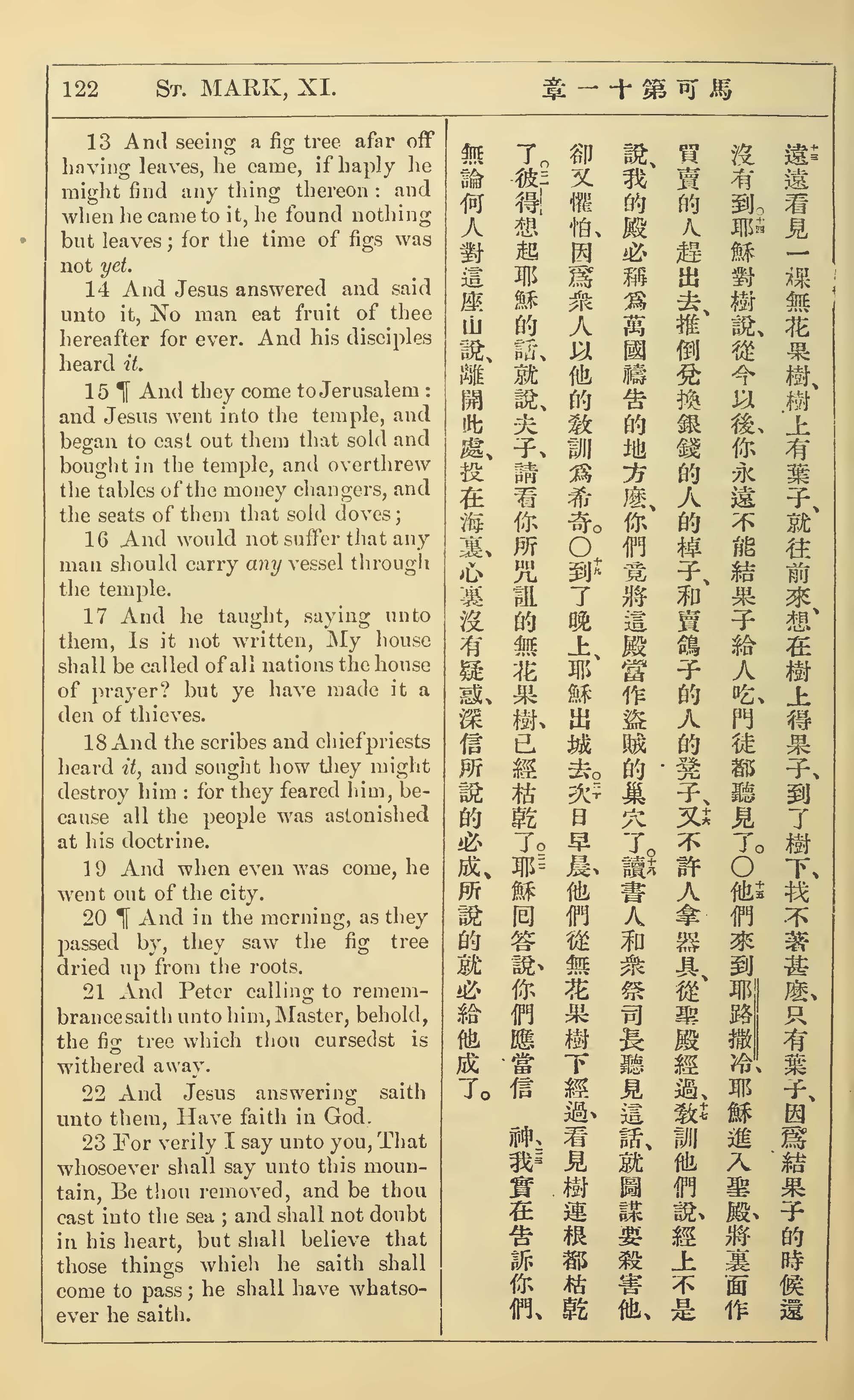 1902年新约全书(中英对照) 马可福音 11 章 13 节到 11 章 23 节