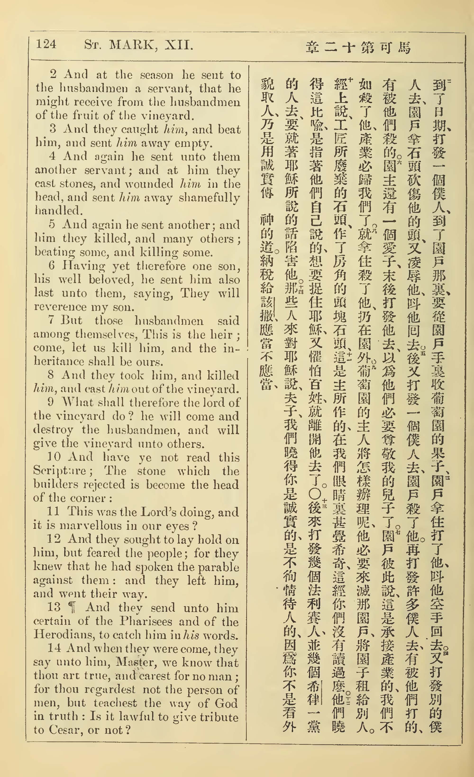 1902年新约全书(中英对照) 马可福音 12 章 2 节到 12 章 14 节