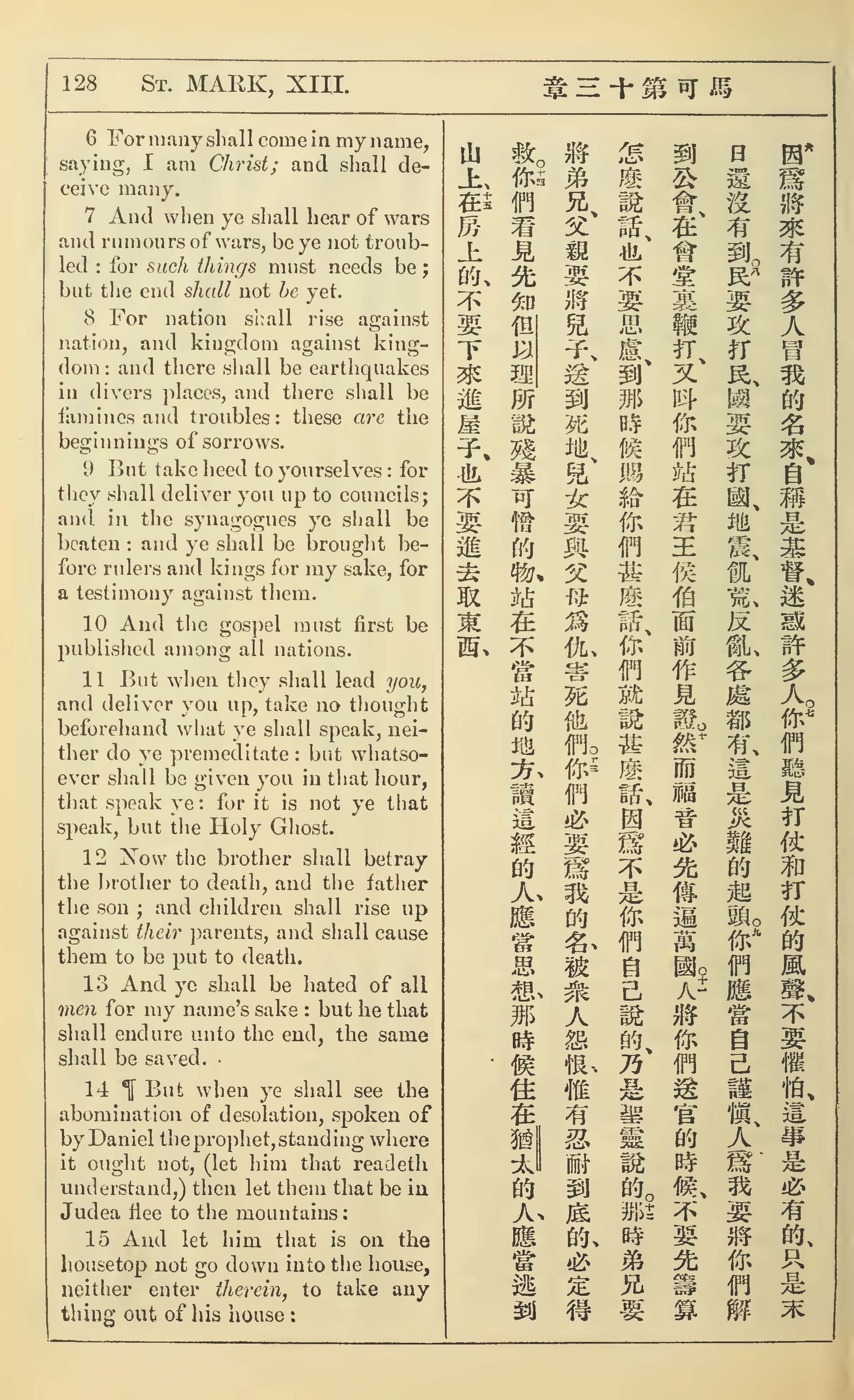 1902年新约全书(中英对照) 马可福音 13 章 6 节到 13 章 15 节