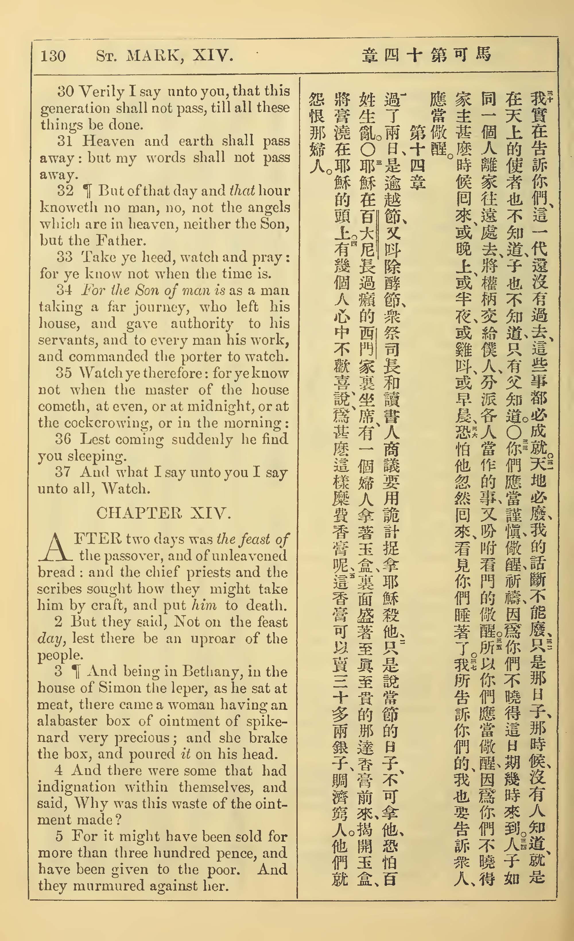 1902年新约全书(中英对照) 马可福音 13 章 30 节到 14 章 5 节