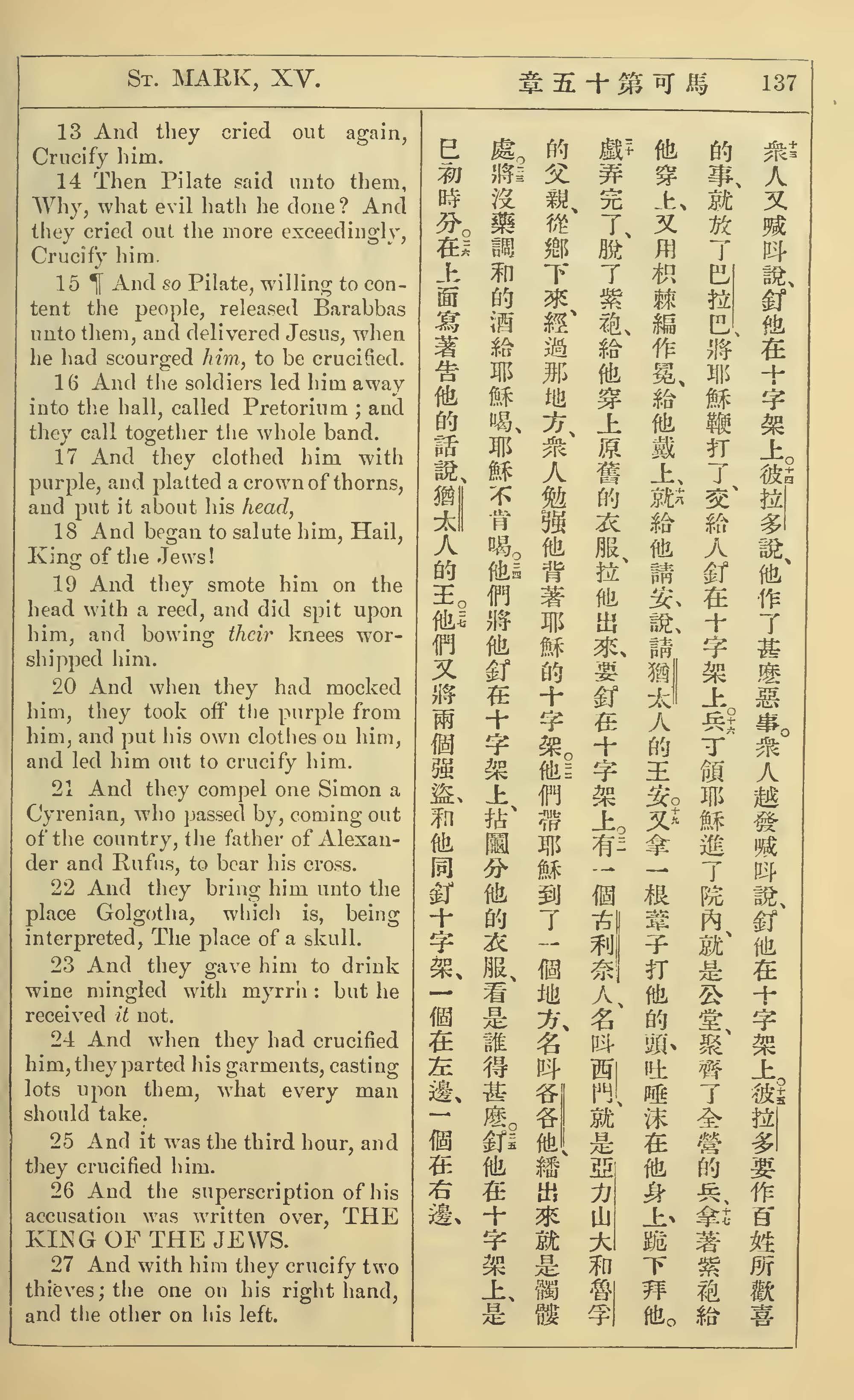 1902年新约全书(中英对照) 马可福音 15 章 13 节到 15 章 27 节