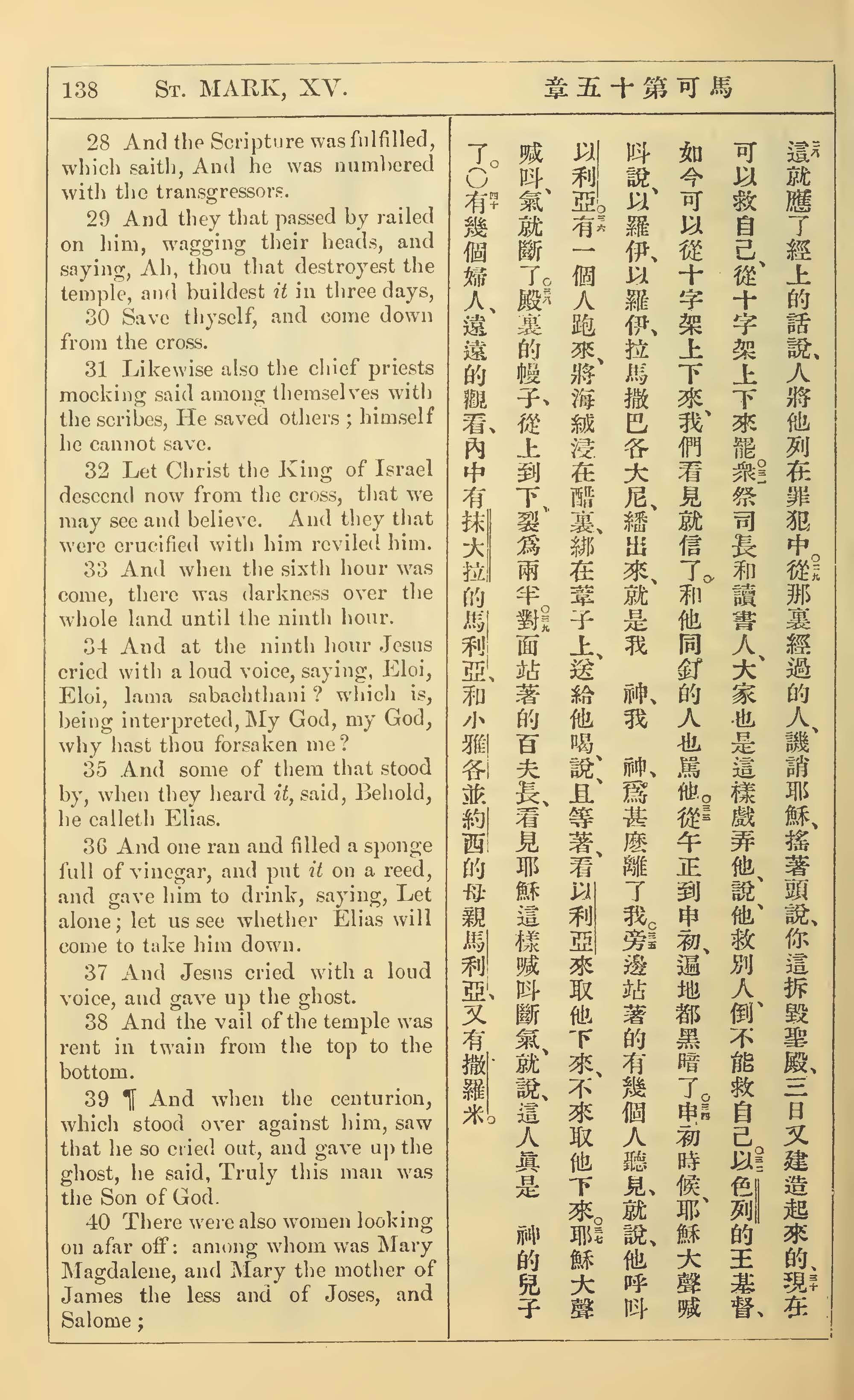1902年新约全书(中英对照) 马可福音 15 章 28 节到 15 章 40 节