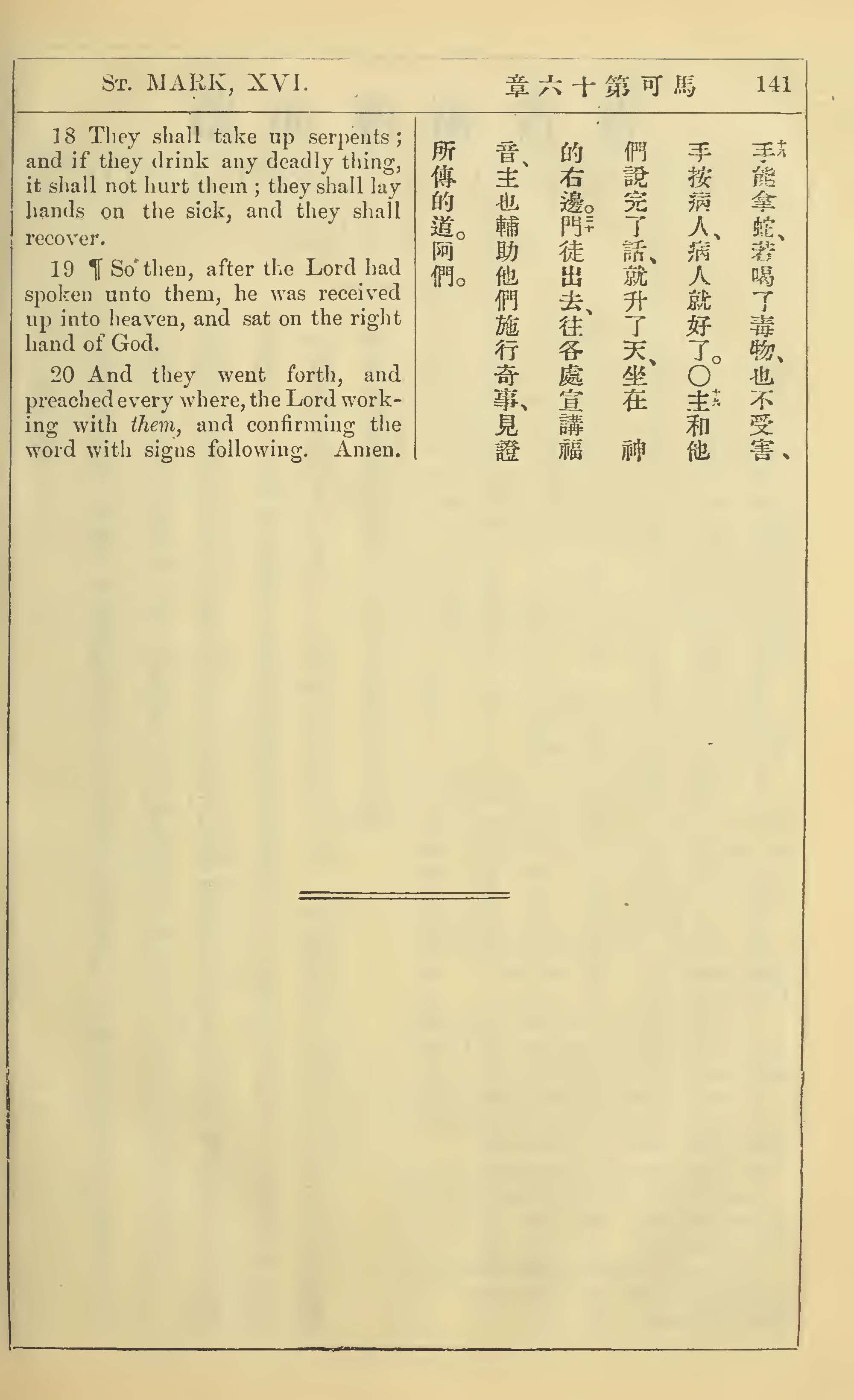 1902年新约全书(中英对照) 马可福音 16 章 18 节到 16 章 20 节