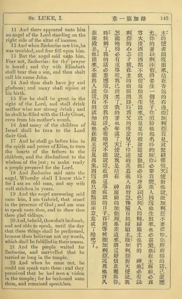 1902年新约全书(中英对照) 路加福音 1 章 11 节到 1 章 22 节