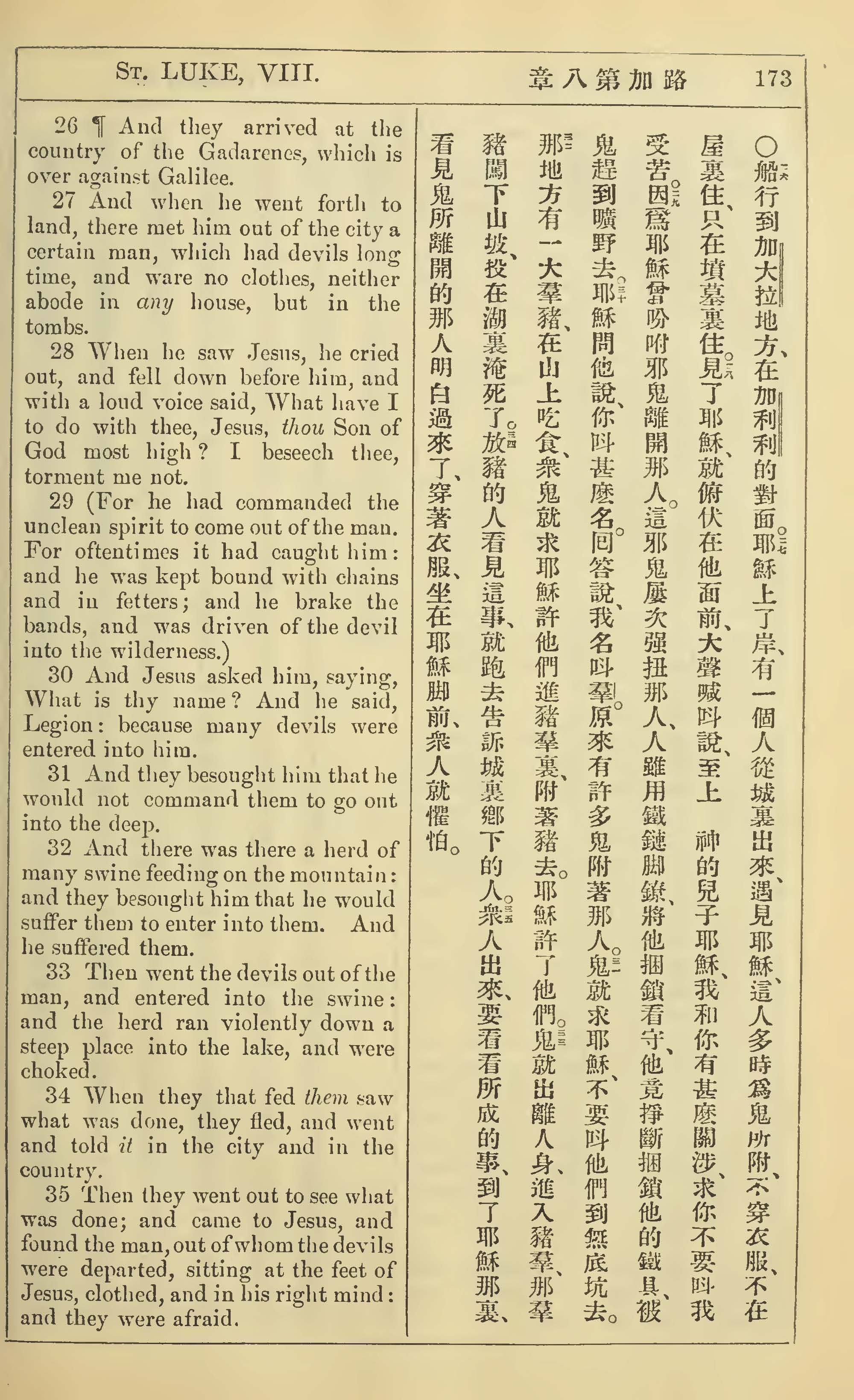 1902年新约全书(中英对照) 路加福音 8 章 26 节到 8 章 35 节