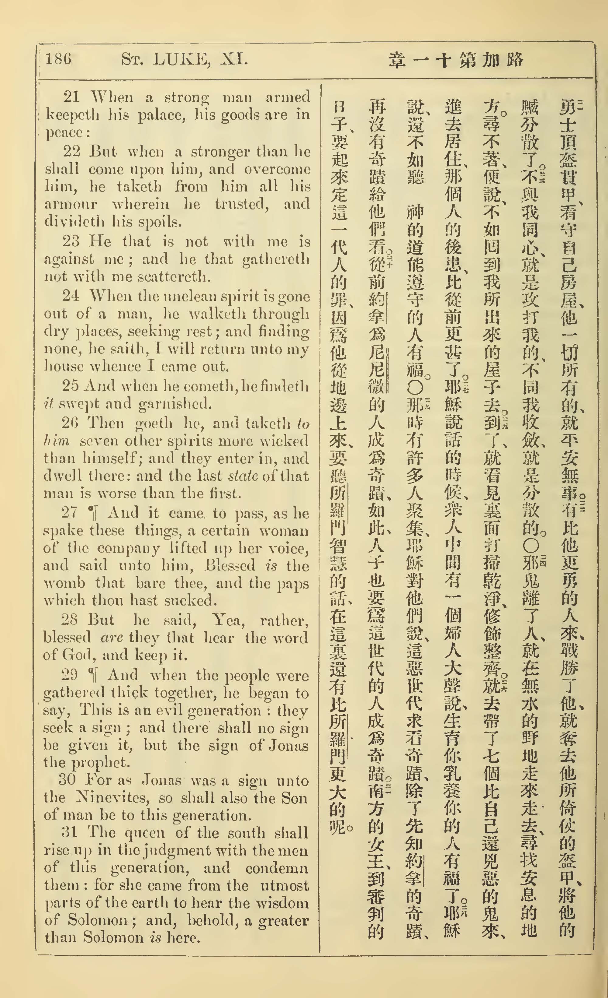 1902年新约全书(中英对照) 路加福音 11 章 21 节到 11 章 31 节