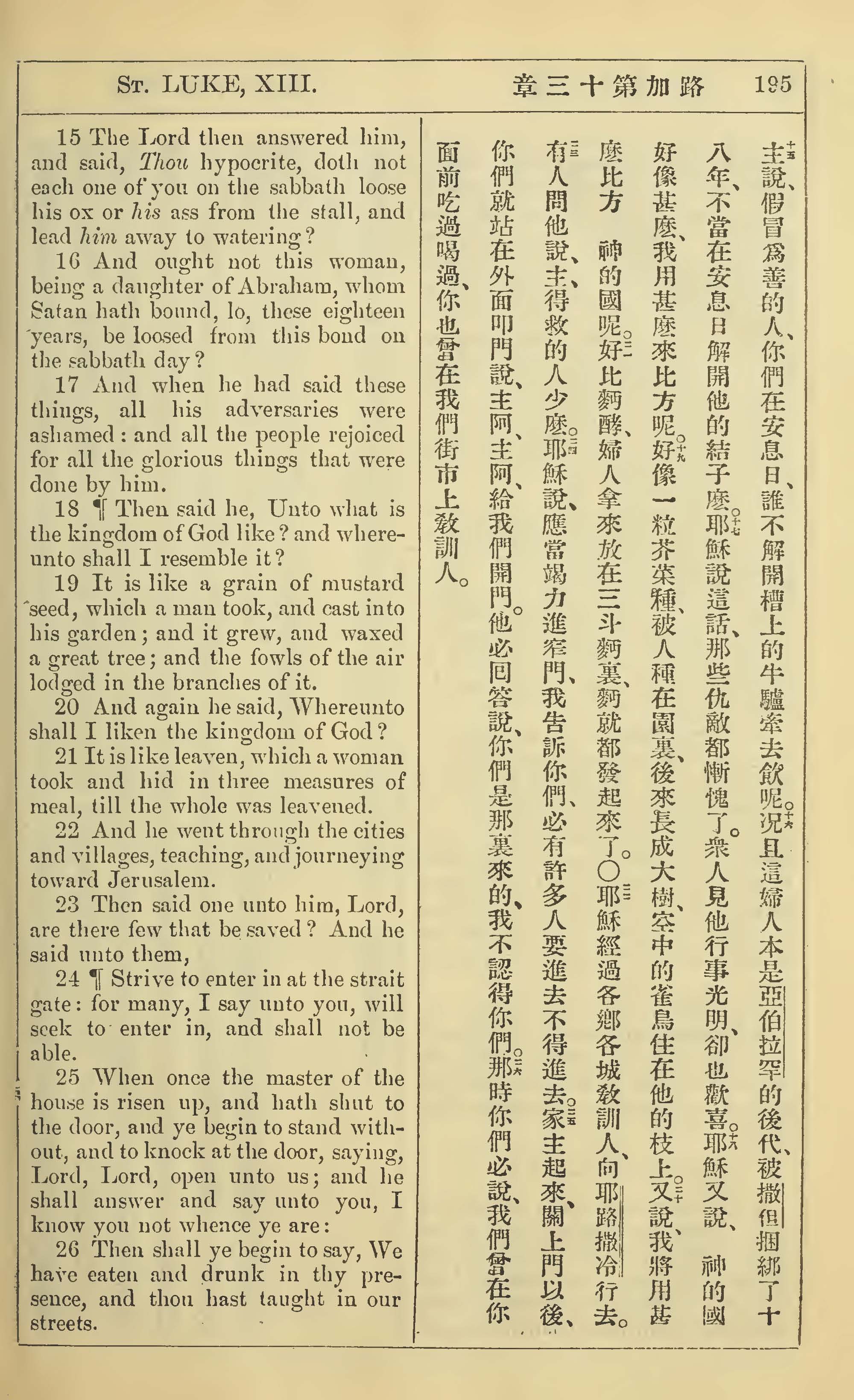 1902年新约全书(中英对照) 路加福音 13 章 15 节到 13 章 26 节